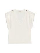 As easy as throwing it on and going. This one features a banded V-neckline, rolled sleeves, knife pleats with functional shoulder epaulets, and, to finish it all off, our signature gold shank buttons. Style tip: Tuck it in for a perfectly slouchy, perfectly undone look. This one comes in Optic White.
