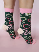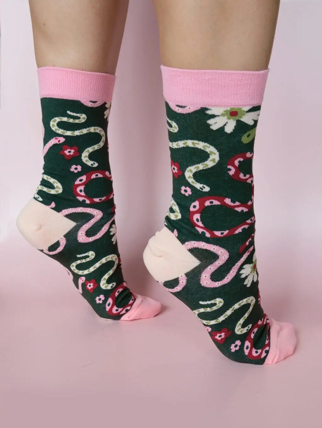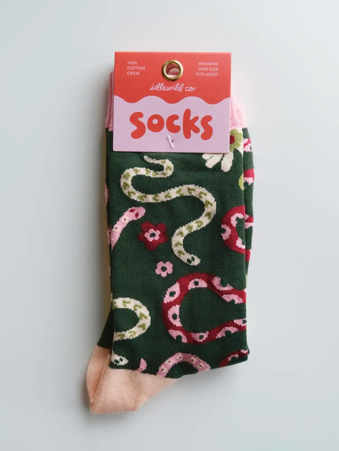 Idlewild Co. socks are made with super soft, 100% combed cotton, and feature vibrantly colored designs made from our hand-painted designs. Our crew sock length hits a few inches above the ankle- wear them scrunched, or full length to show off our uber-fun designs!
