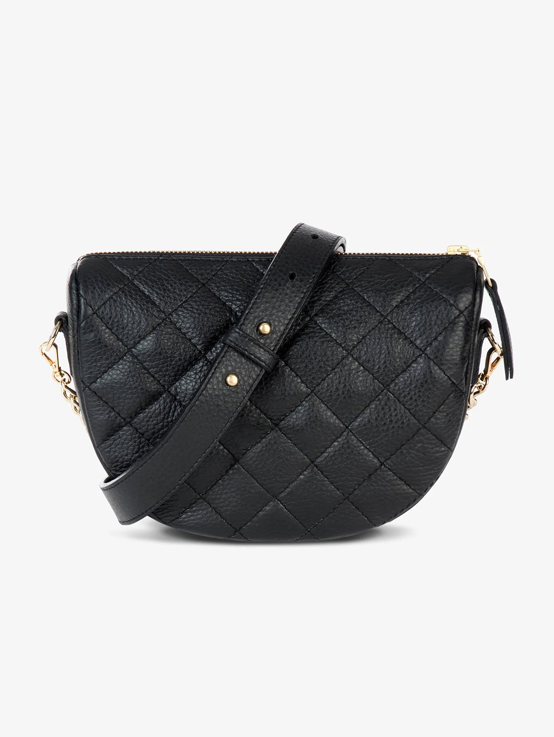 Meet Davina, our modern half moon bag, handcrafted from our signature quilted Nappa leather. A wider adjustable strap gives this piece an updated, sportier feel. Davina can be worn on the shoulder or crossbody. Two interchangeable straps included. Get ready to turn heads with this stunning piece.