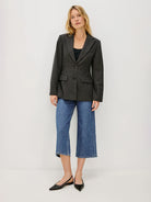 The Doris is a fully lined blazer with classic suiting details, plus a longline silhouette and nipped waist for a flattering fit. It's completed with dual flap pockets and front button closures.