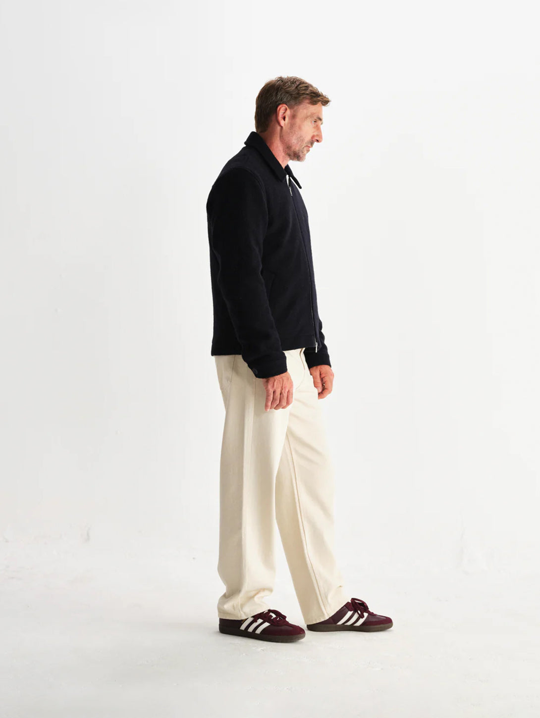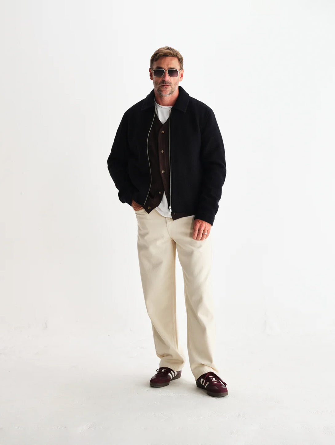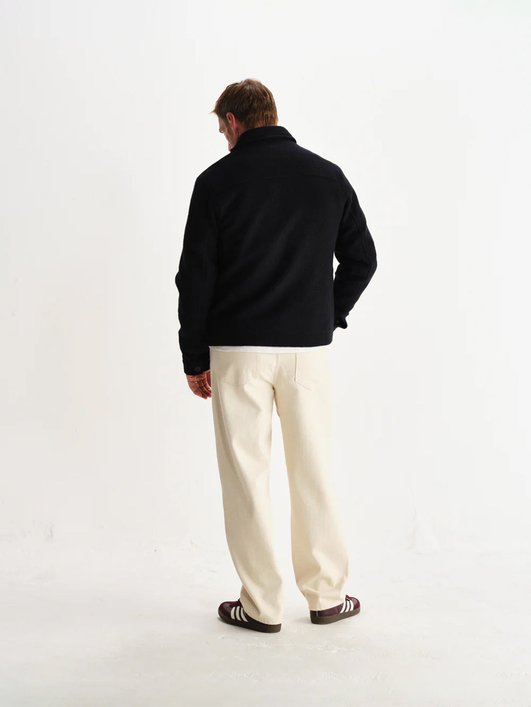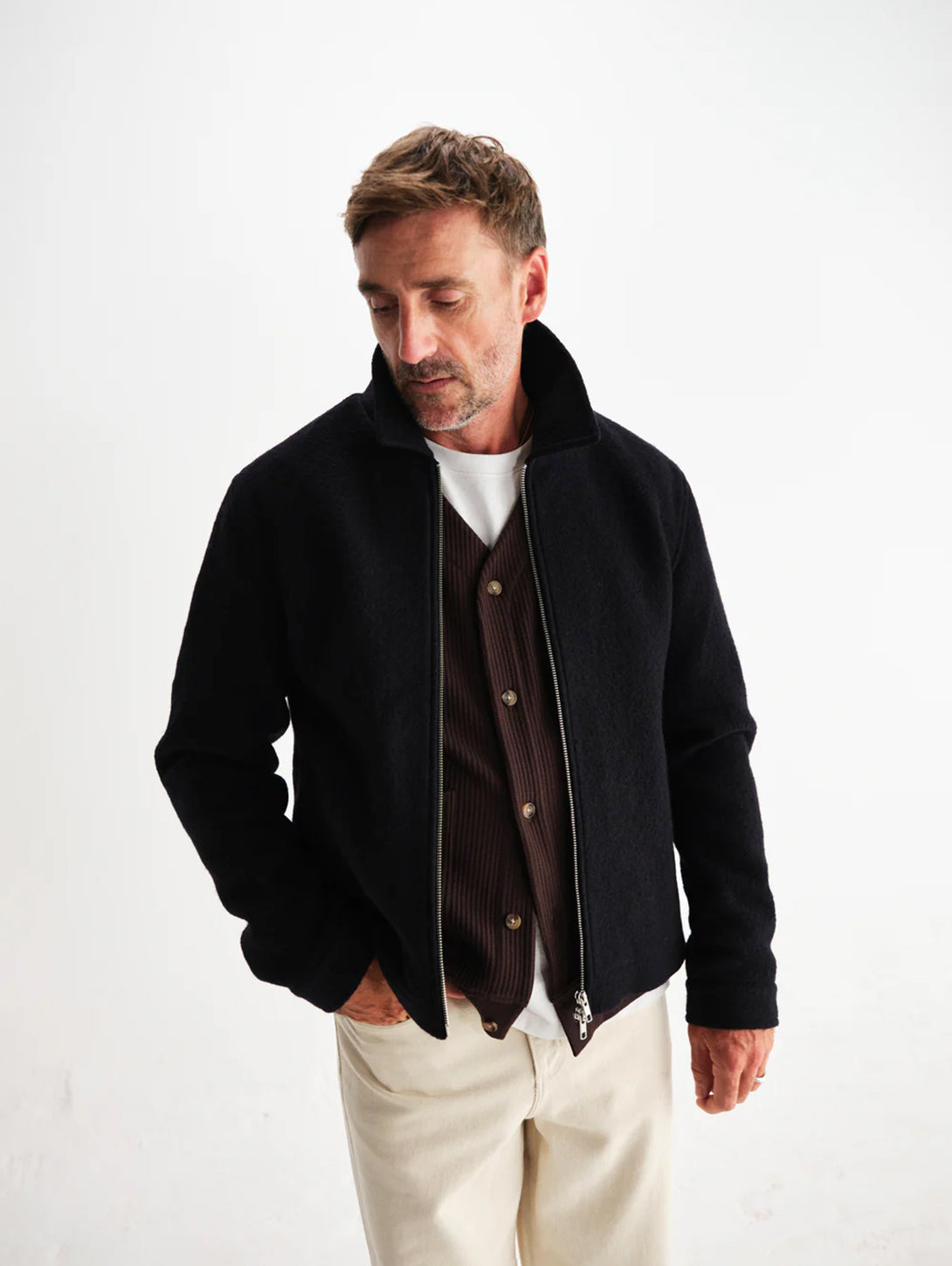 The Eldon is your go-to jacket for any occasion. Cut for a boxy fit, this midnight navy colourway is constructed from 100% Italian wool for exceptional warmth and comfort. Fully lined with a clean, minimalist silhouette, it’s finished with welt pockets and a two-way zip for added functionality.