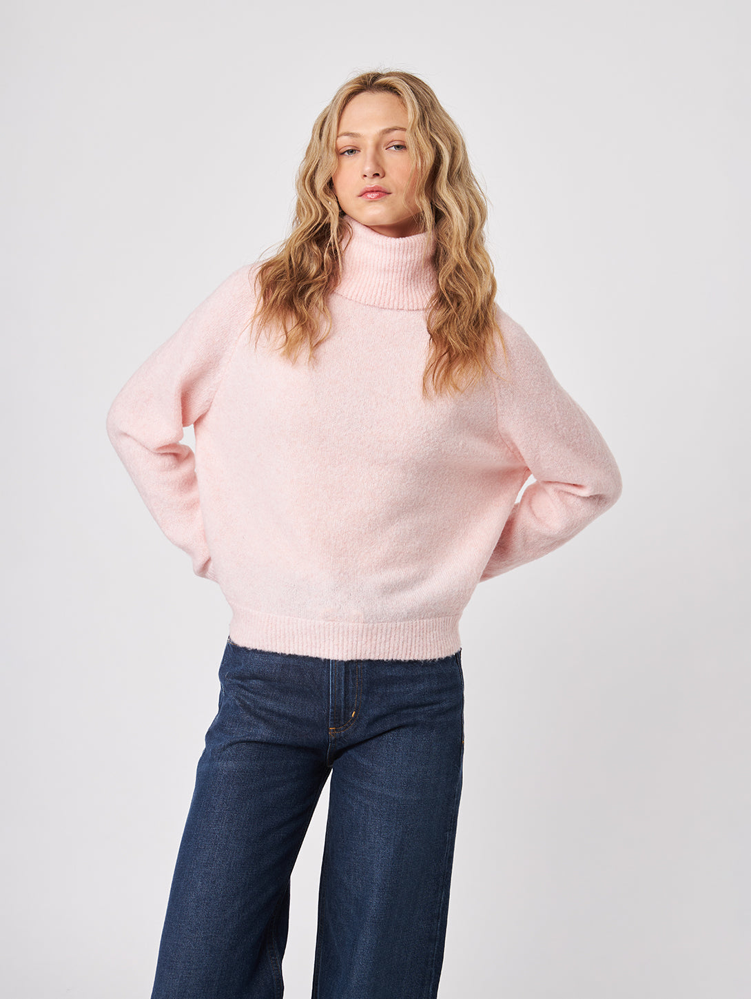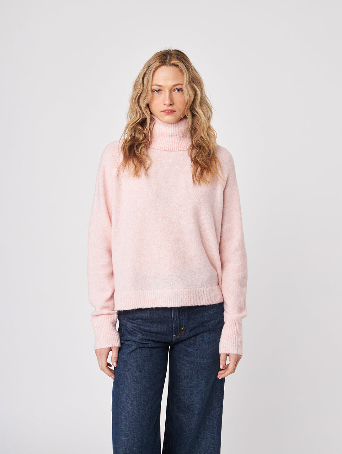 A cozy essential reimagined with modern ease—meet the EMMETT pullover. This ultra-soft sweater features a slouchy turtleneck and relaxed drop-shoulder silhouette for a casual, elevated feel.