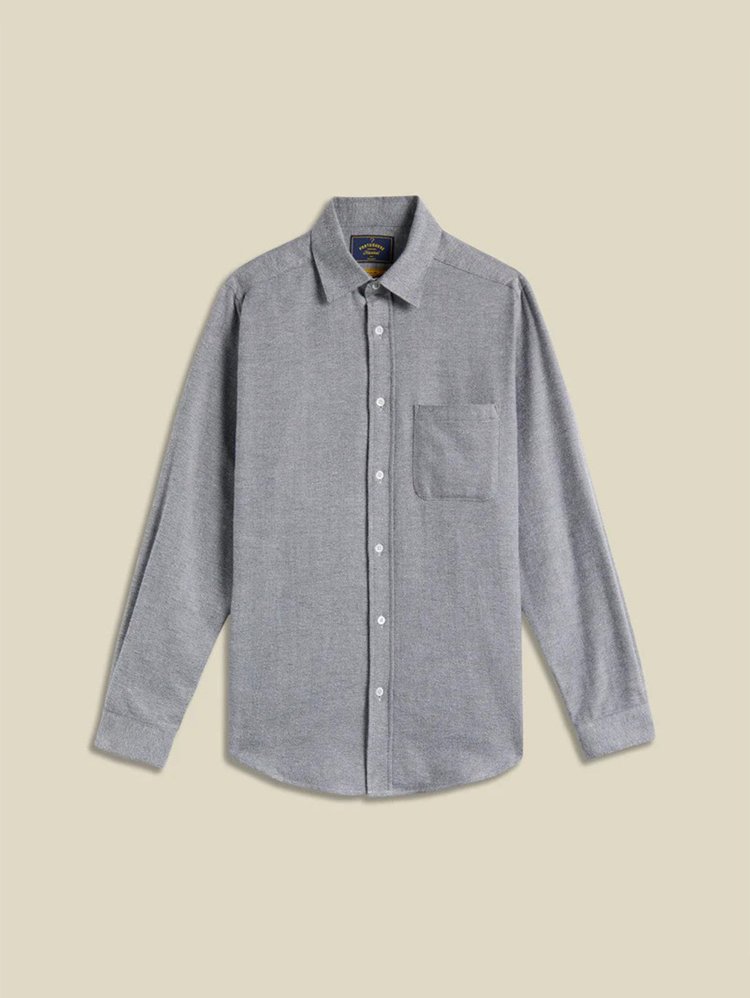 The Espiga Shirt in grey features a classic long-sleeve design with a structured collar, providing a polished and professional appearance. Its front button closure ensures convenience and a secure fit, making it a versatile piece for both formal and casual settings. Crafted for style and functionality, this shirt is a reliable choice for a refined wardrobe.