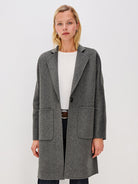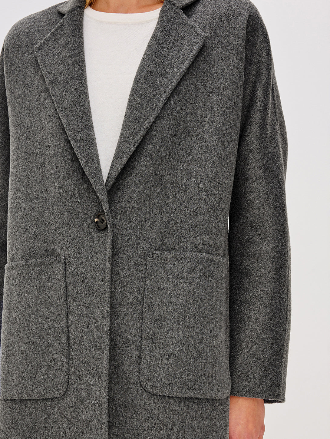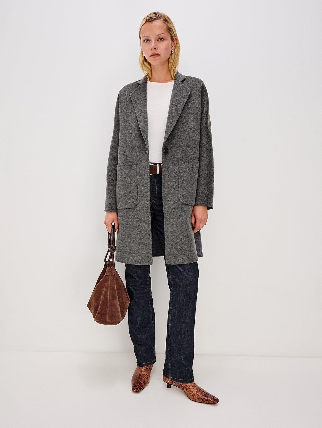This luxe coat is the perfect third piece sure to elevate any outfit. Made from a heavyweight wool blend, this unlined coat features a slightly oversized fit, notched lapels, dolman sleeves, oversized patch pockets at hip, and a single-button front closure with horn button.