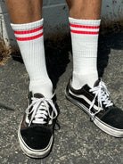 Due to popular demand we created the Boyfriend Socks in extended sizing, which is unisex and men-friendly! They maintain the same design as our bestseller and signature style, Boyfriend Socks, with a slightly bigger foot and longer leg. Their classic, vintage-sporty vibe can be styled with all of any daytime look or worn as the perfect lounge sock to keep your feet comfy at all times.