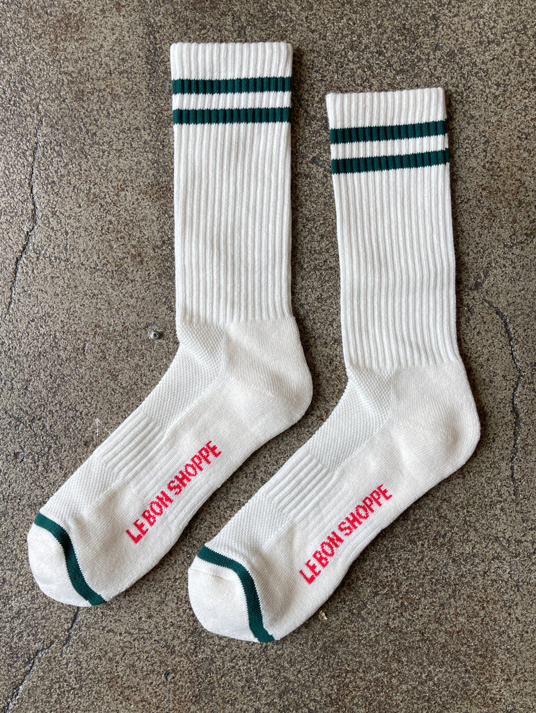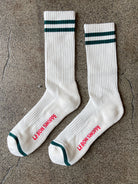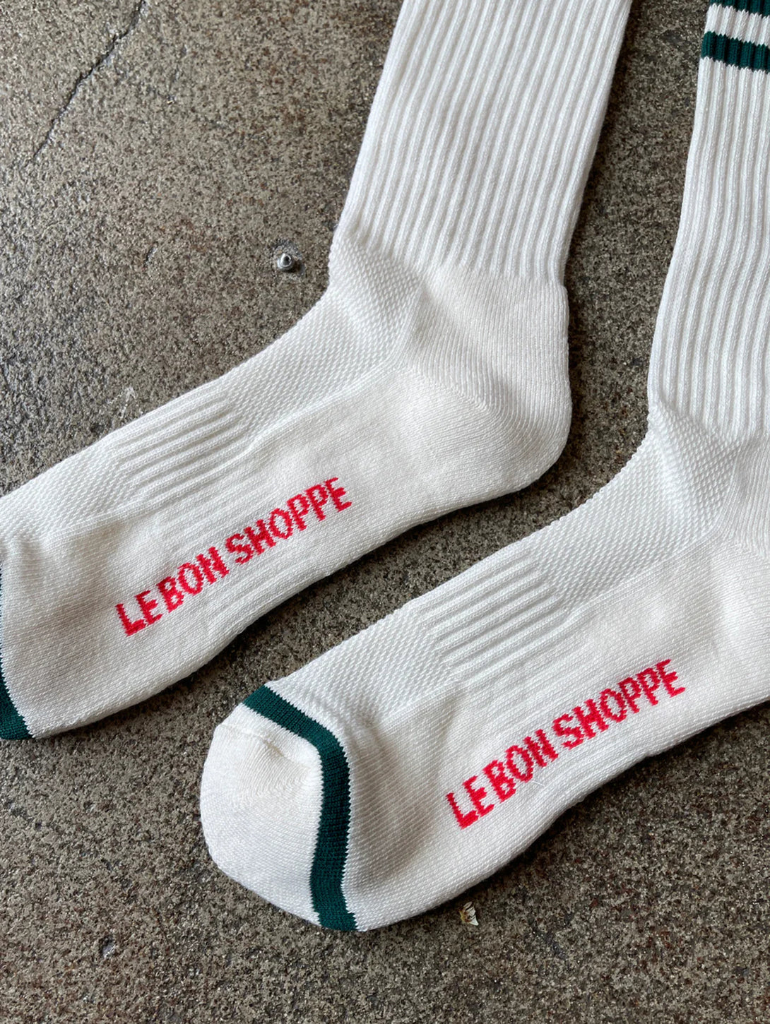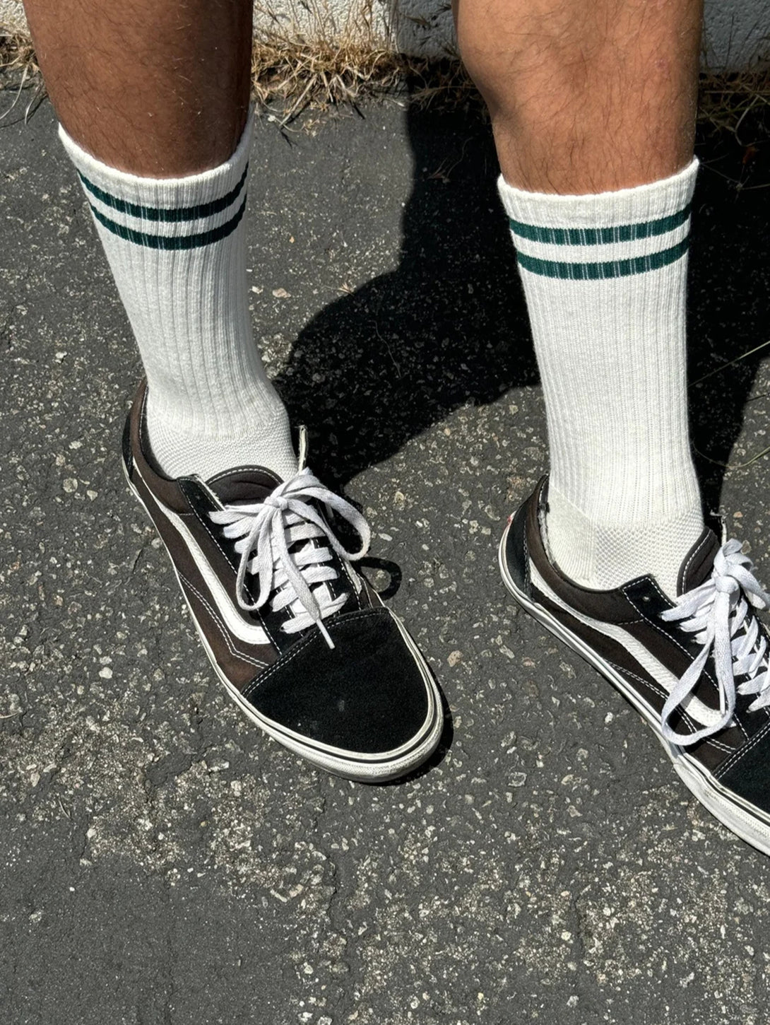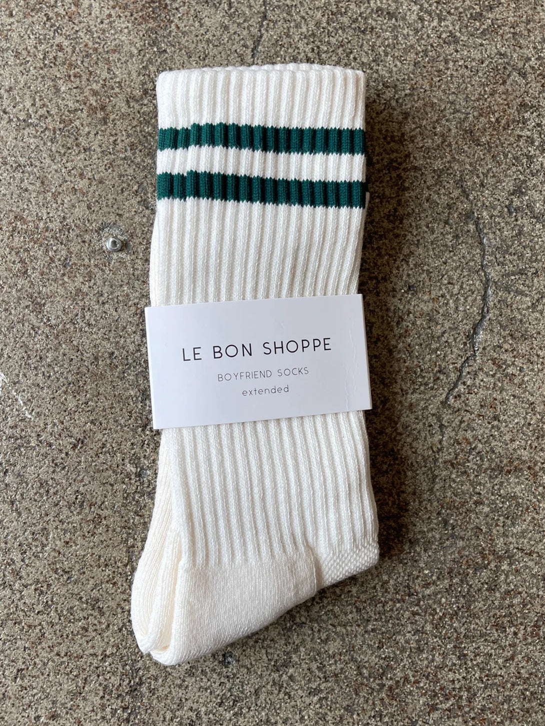 Due to popular demand we created the Boyfriend Socks in extended sizing, which is unisex and men-friendly! They maintain the same design as our bestseller and signature style, Boyfriend Socks, with a slightly bigger foot and longer leg. Their classic, vintage-sporty vibe can be styled with all of any daytime look or worn as the perfect lounge sock to keep your feet comfy at all times.
