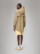 This design features utility-inspired pockets, vented back yoke and a hood with built-in cap and drawstring. Style is finished with elasticated cuffs for a tighter fit around wrist. Fishtail Jacket has a casual fit with an elegant drape, making it a clear cut raincoat for daily commutes. The coated zip closure is concealed by a placket with snap fastenings. This rain jacket is cut from Rains' signature PU fabric and features welded seams. The finish is lightweight with a soft feel.