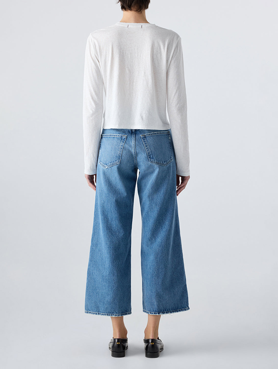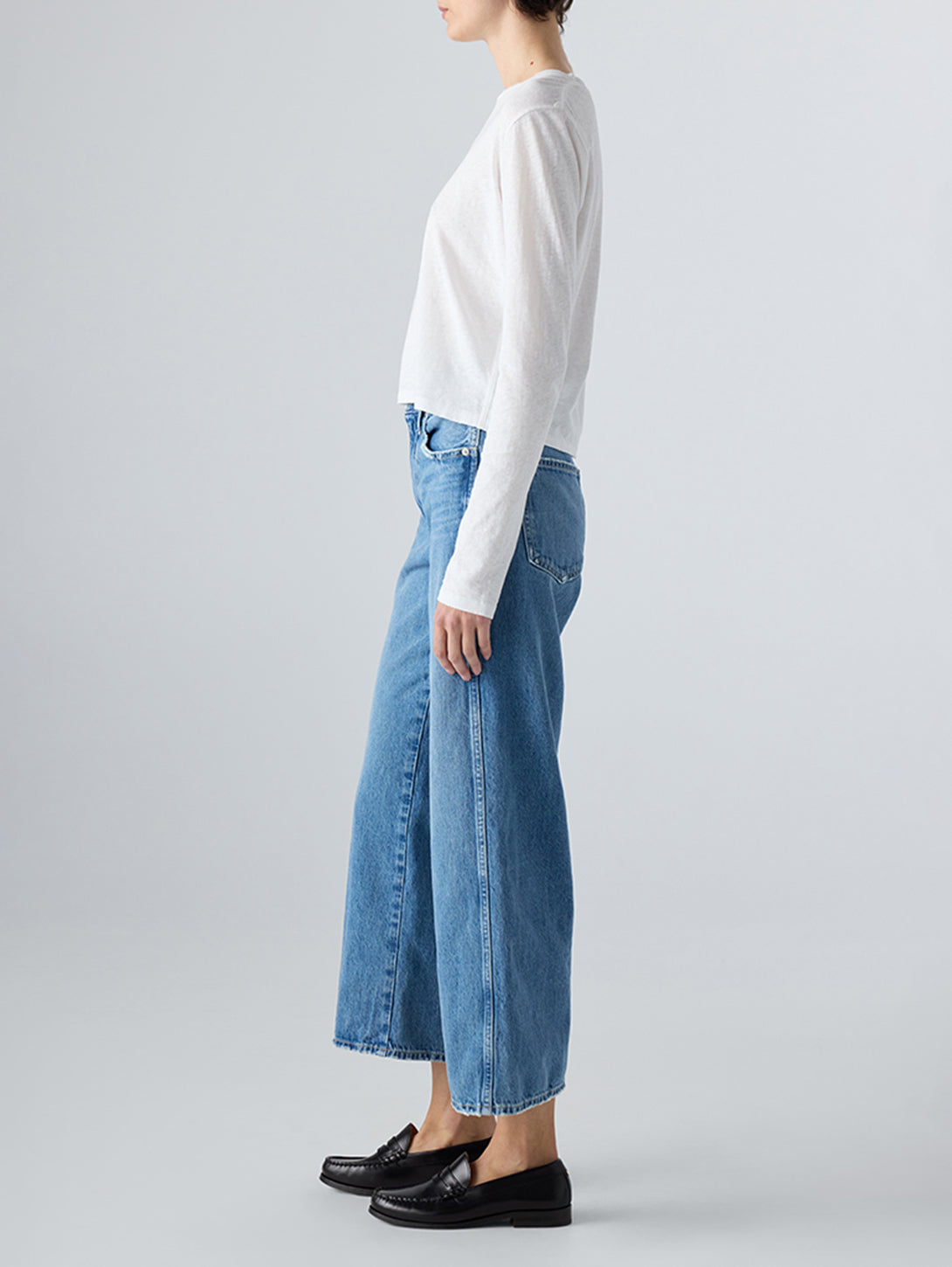 A shortened take on our popular high-rise, wide-leg style. Featuring a comfortable fit across the hips and thighs, these cropped jeans are perfect for daily wear. Equipped with a zip fly for convenience.