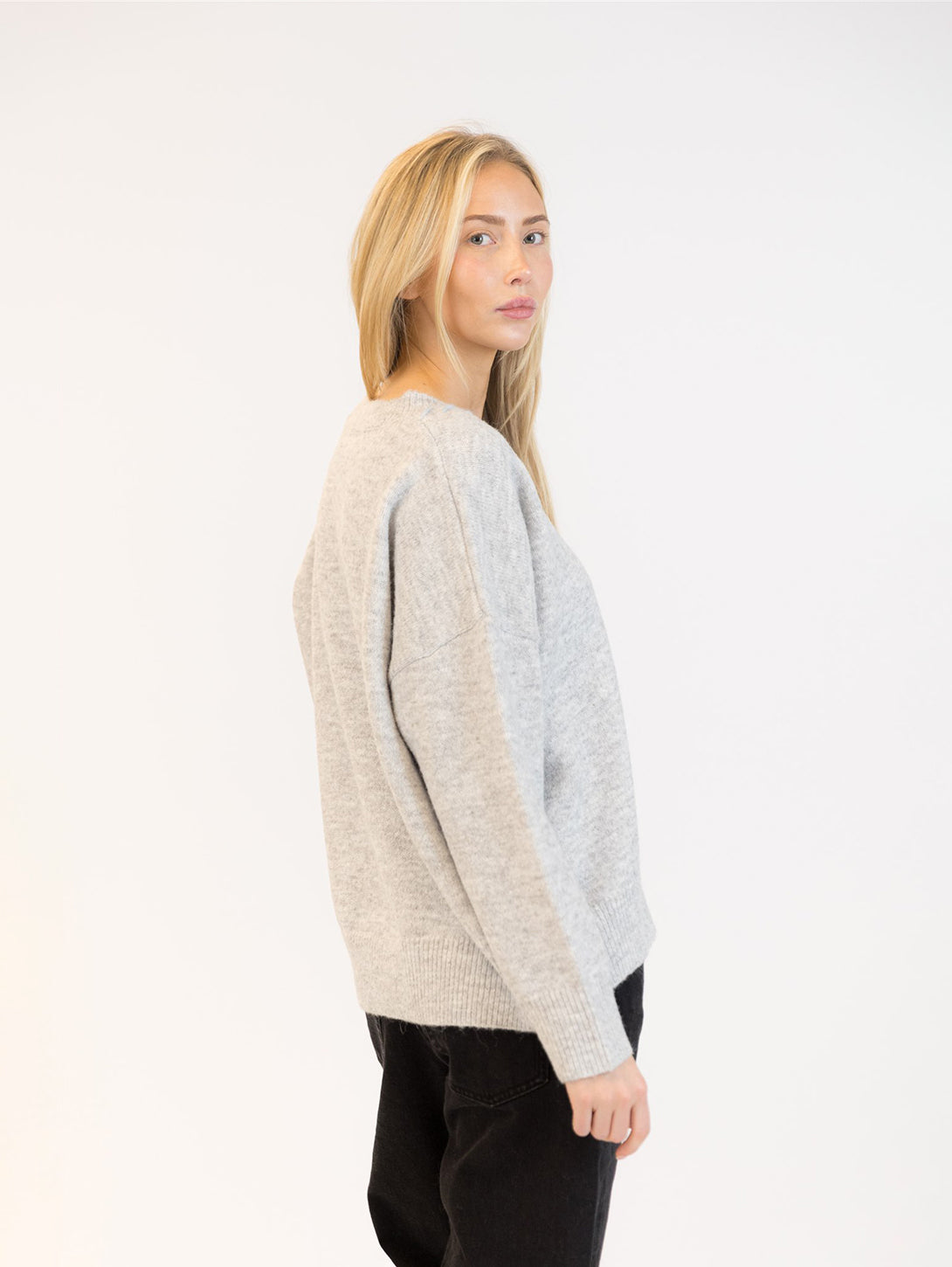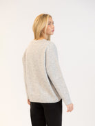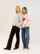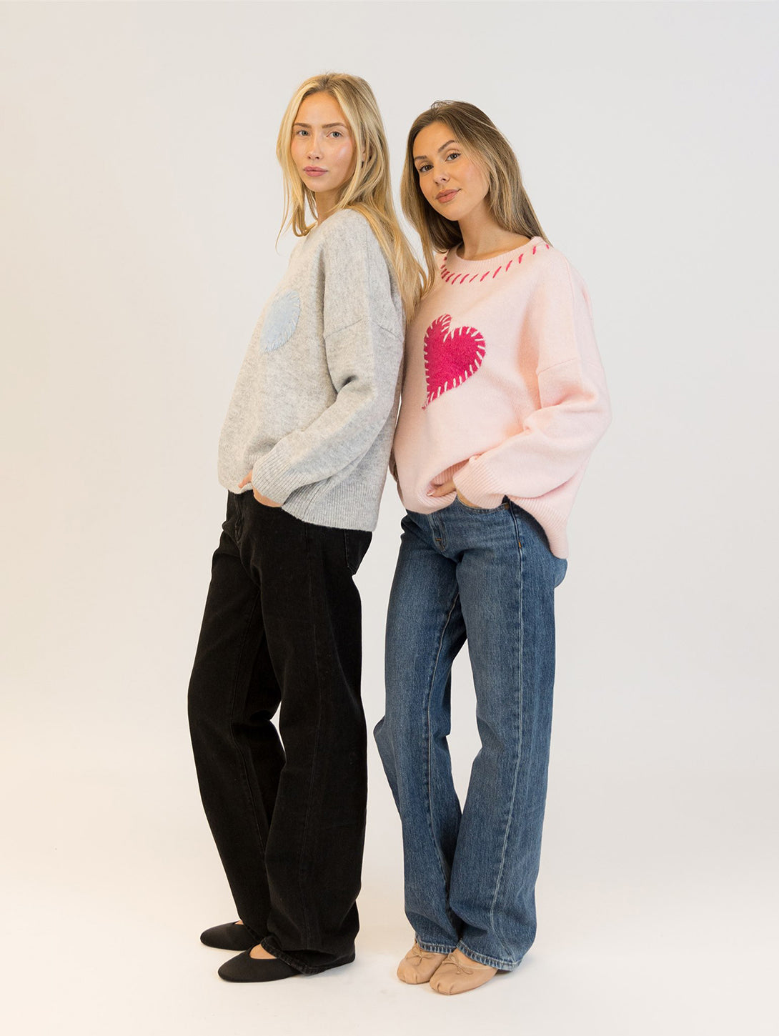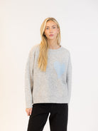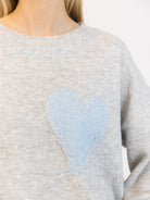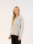 This eco-friendly pullover features a soft light grey color with a striking blue heart design, bringing a playful and heartfelt touch to your wardrobe. The comfortable, breathable fabric ensures a cozy fit, making it perfect for layering or wearing on its own. The bold blue heart adds a unique element, making this pullover both stylish and full of personality.
