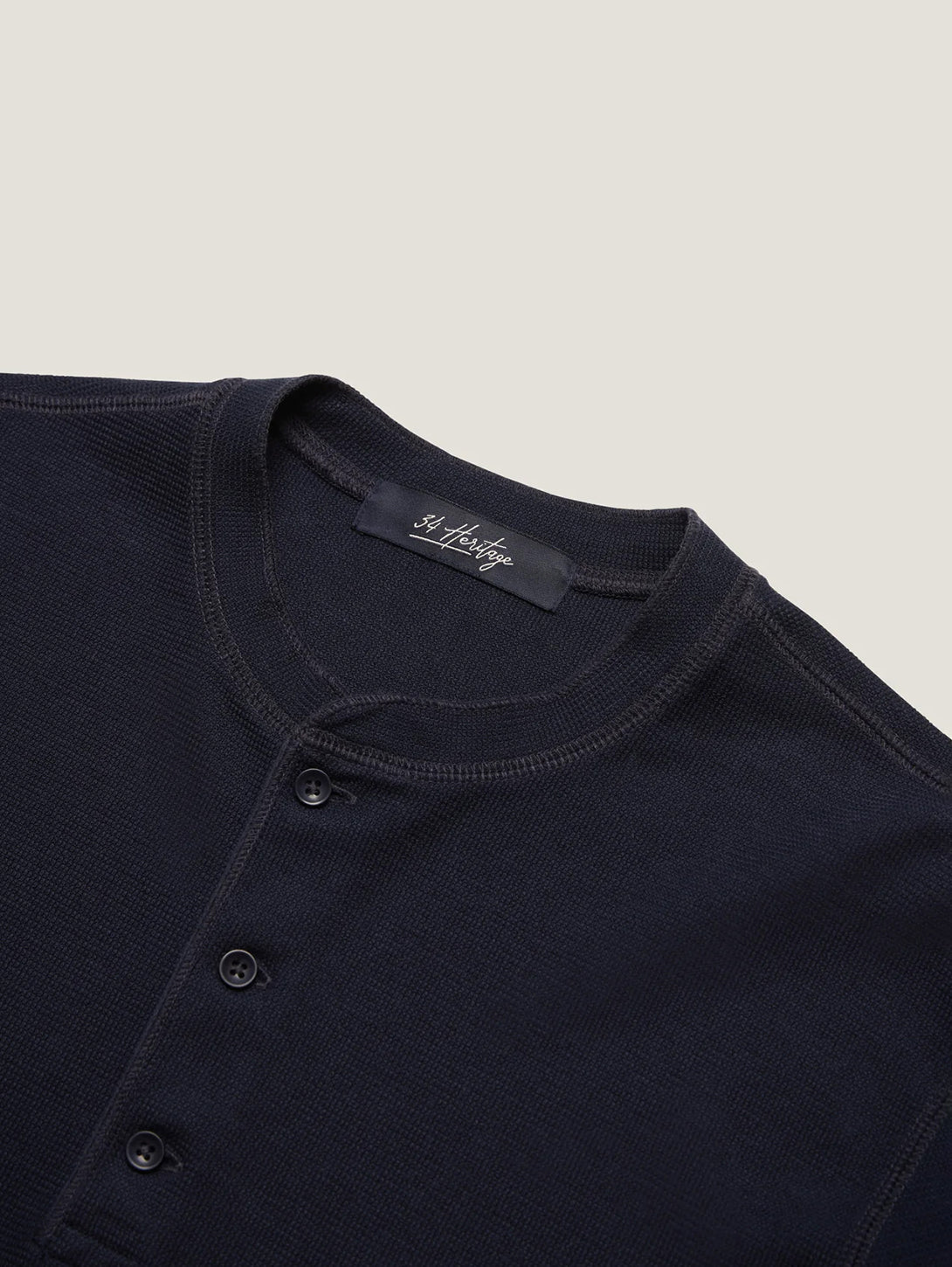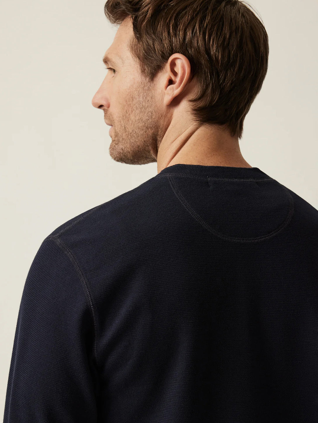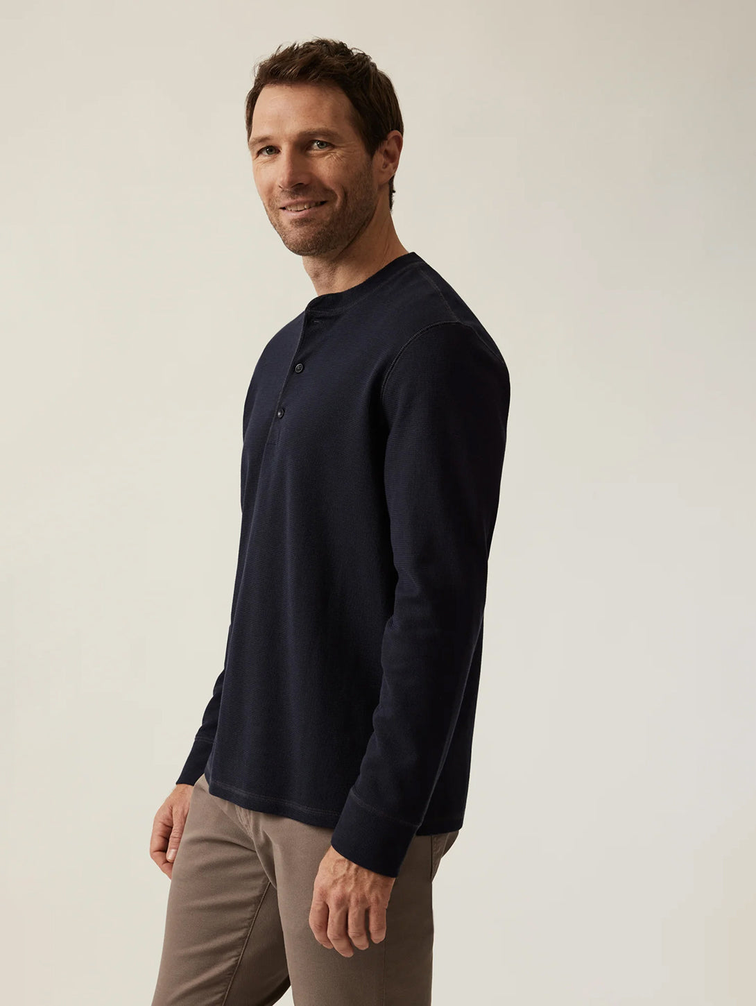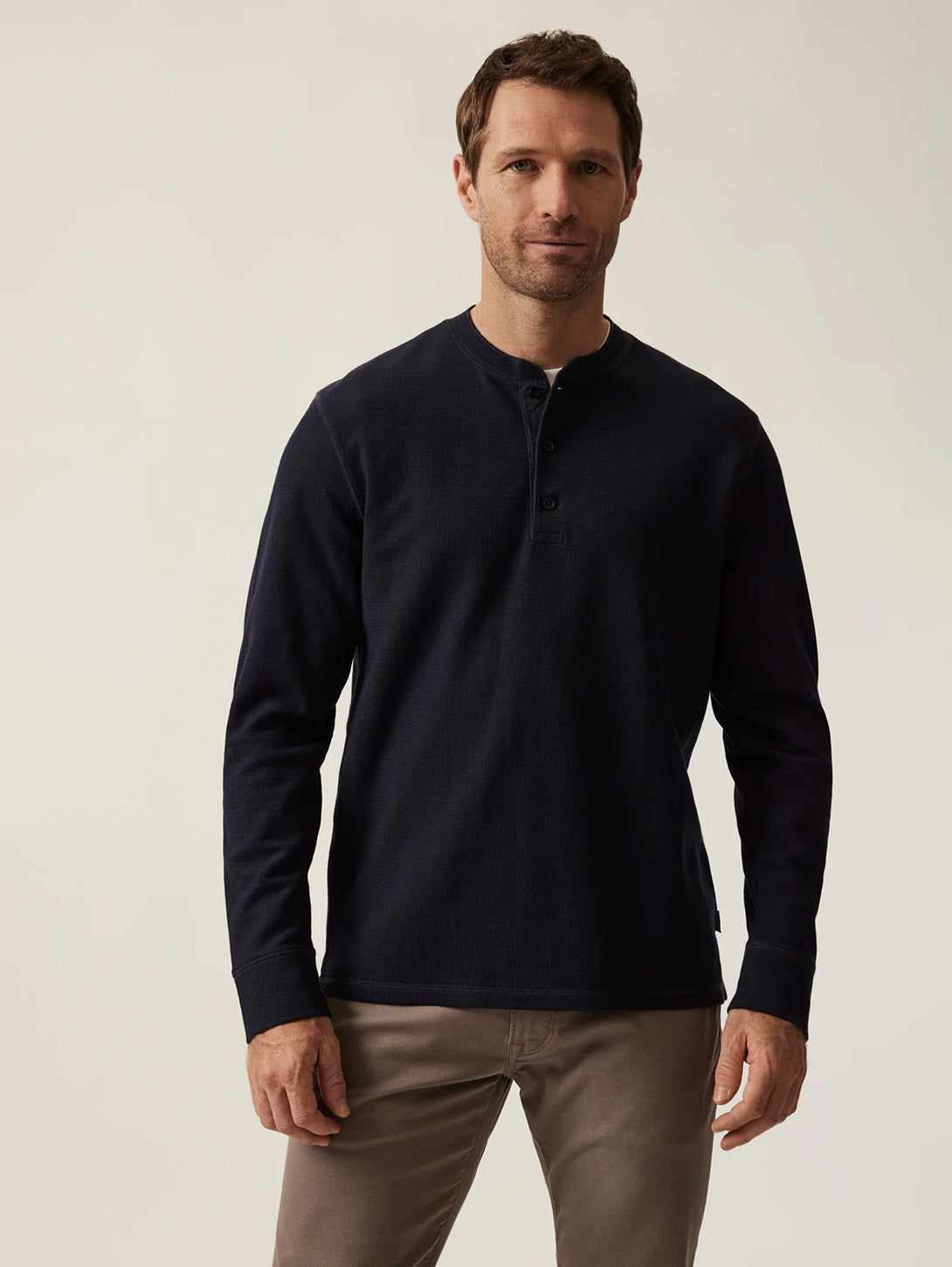 This premium henley shirt is the ideal casual top to pair with your favorite jeans or trousers. Crafted with luxurious Pima cotton and spandex, this shirt has an ultra-soft feel. Finished in a classic navy hue, this henley is a comfortable piece you’ll reach for again and again.