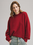 Hi Lo Pleat Sleeve Crew Sweater - Cardinal