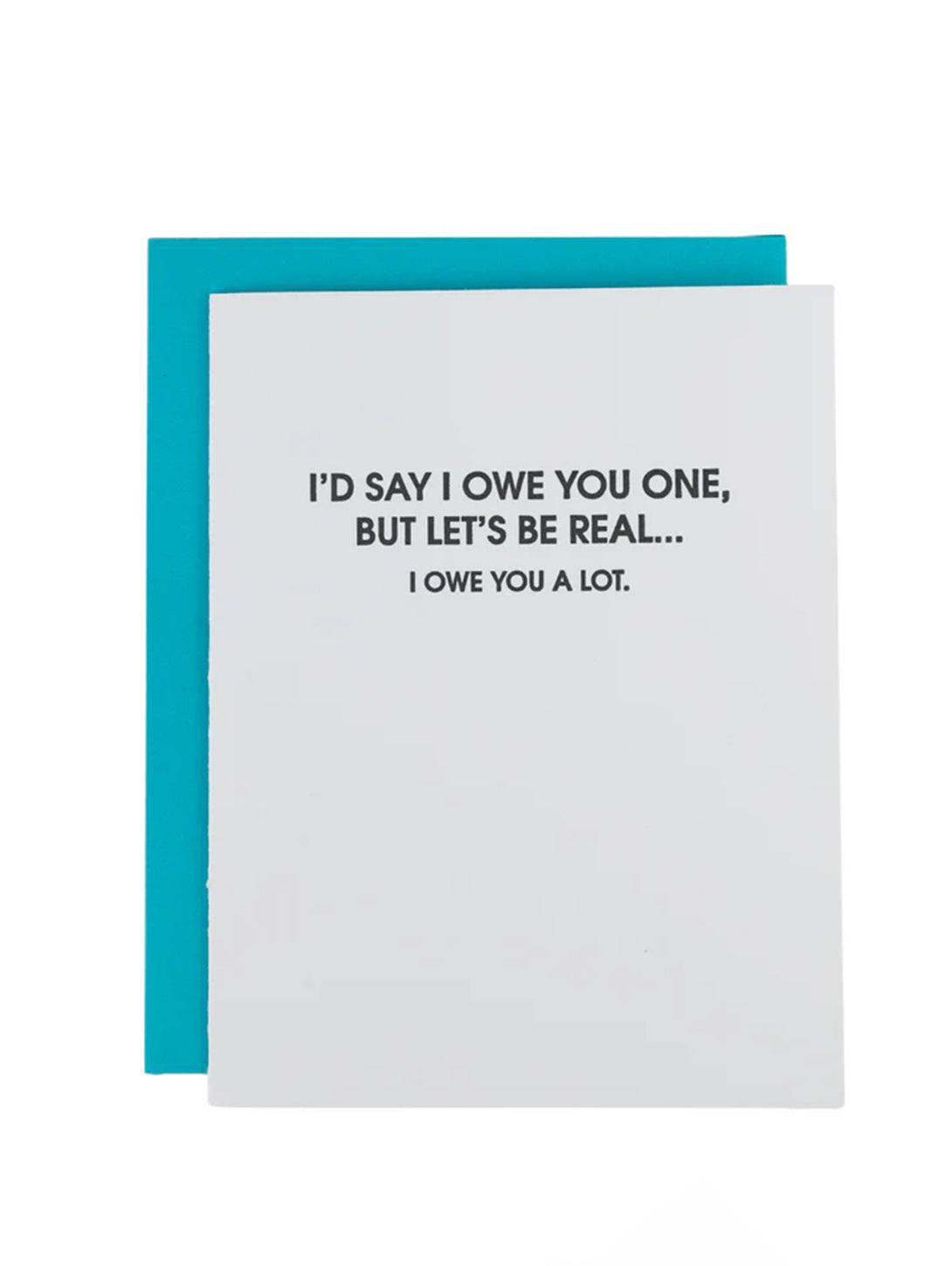 I’d Say I Owe You One, But Let’s Be Real—I Owe You - Letterpress Card
