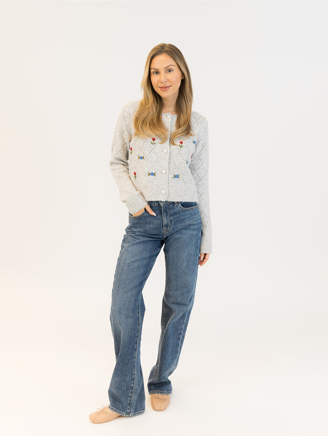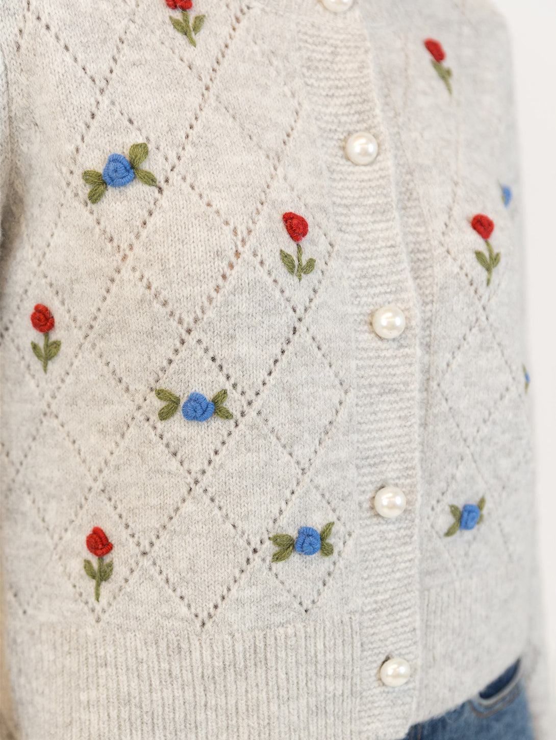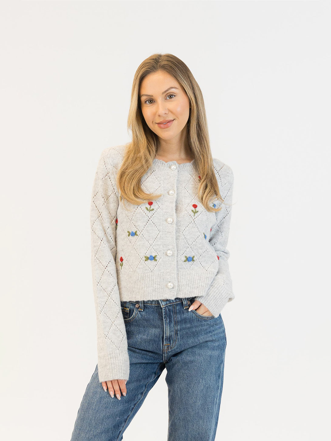 This eco-friendly cardigan features beautifully embroidered roses, adding a delicate and romantic touch to your look. The soft, comfortable fabric makes it a perfect addition to both casual and semi-formal outfits, while the rose embroidery enhances its unique and feminine style.