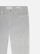 A FRAME signature jean, this style is designed with a classic 5-pocket construction, comfortable mid rise, flattering straight leg, and tapered slim fit at the leg opening. Crafted from smooth Structured Stretch denim in a subtle Grey Blue wash.