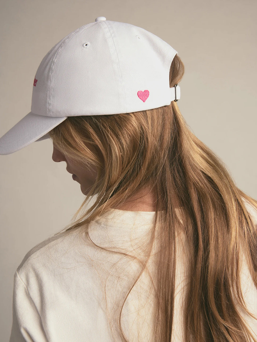 Big love for our classic baseball hat. The cotton, unstructured hat features Favorite Daughter embroidery and the sweetest pink heart detailing on the back.