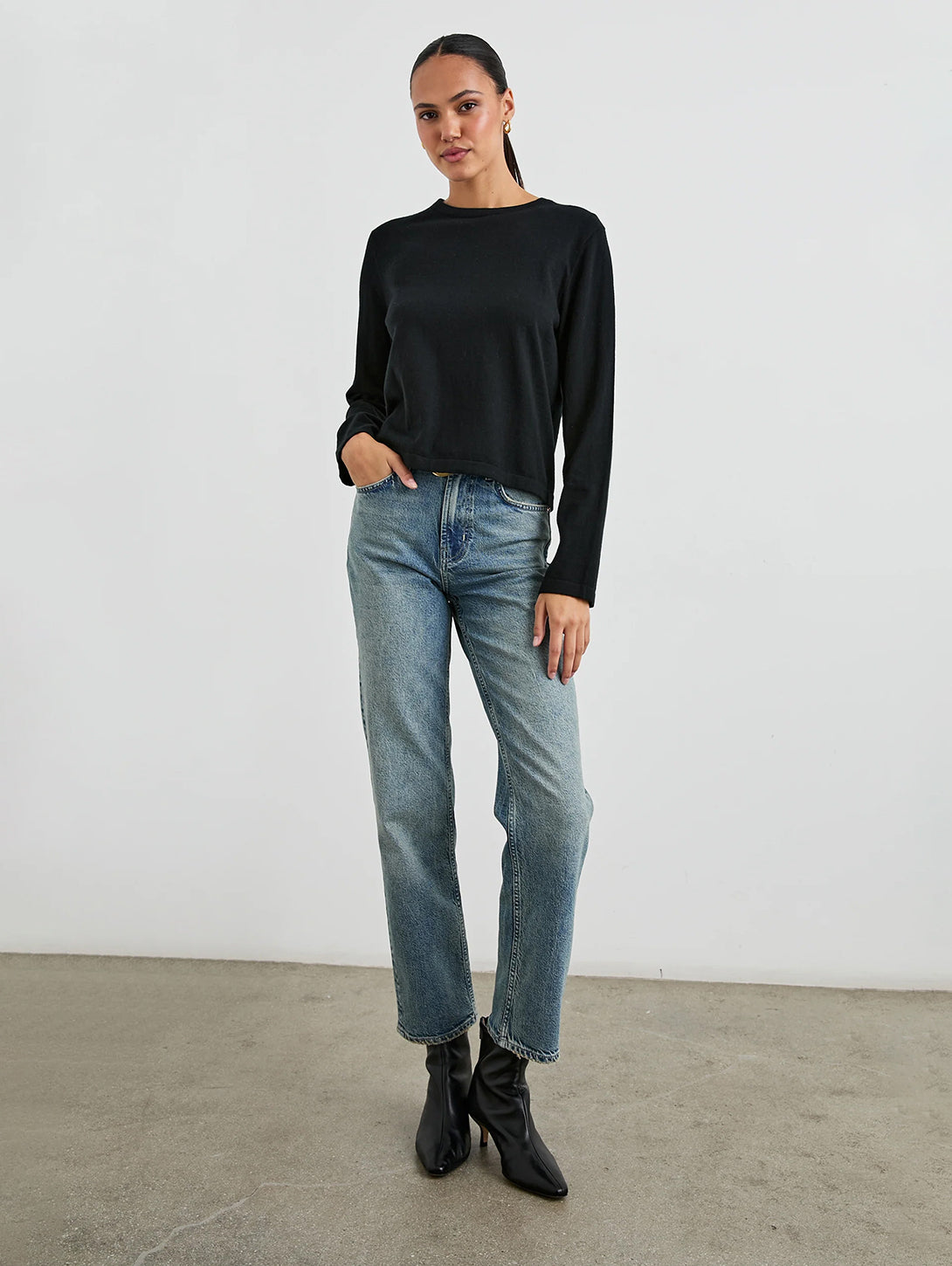 Long Sleeve Crew Sweater - Black