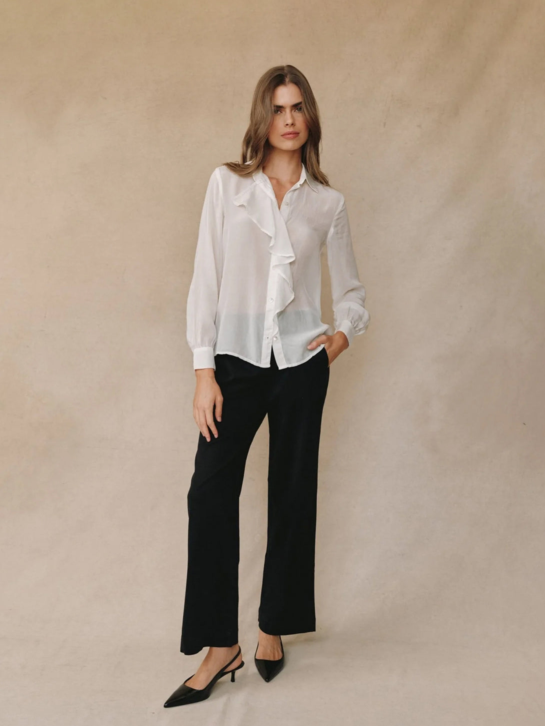 The Ruffle Front Shirt is a modern essential designed for effortless, everyday wear.