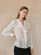 Long Sleeve Ruffle Shirt - Sheer Ivory