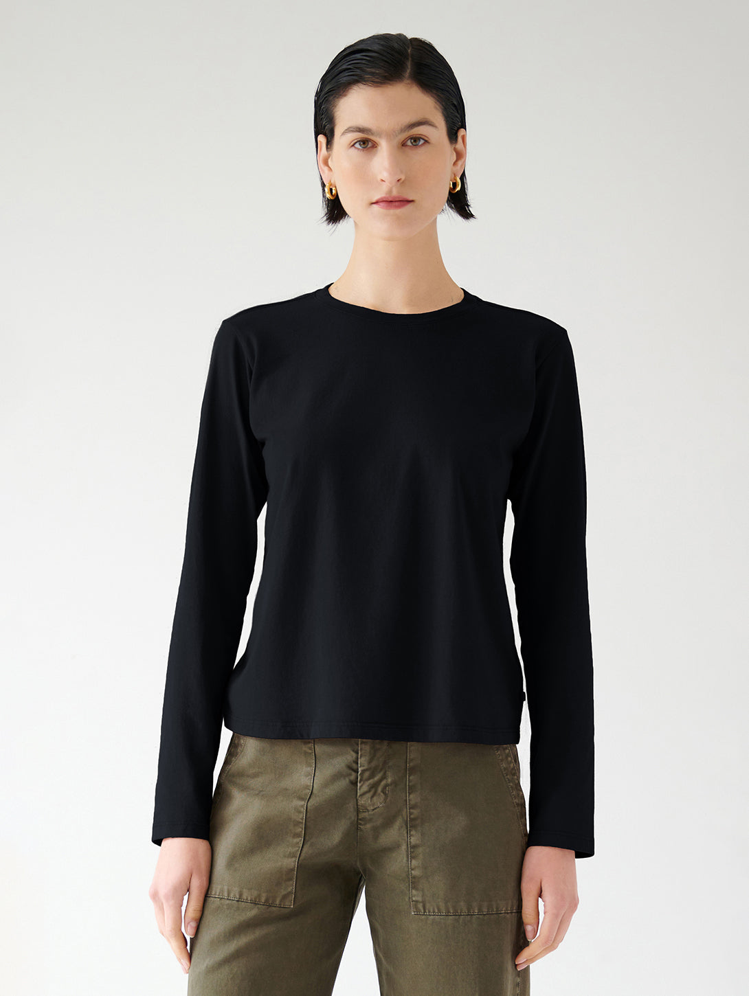 The ultimate in seasonless dressing and style This long sleeve tee is crafted from an organic cotton with a soft hand. A relaxed fit with just a hint of slouch that looks great layered or solo.