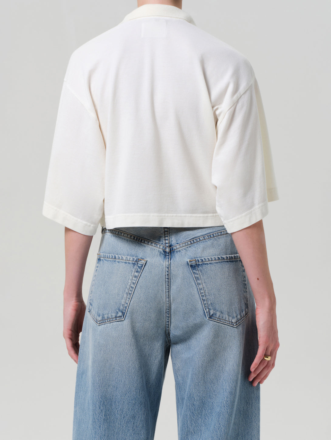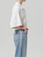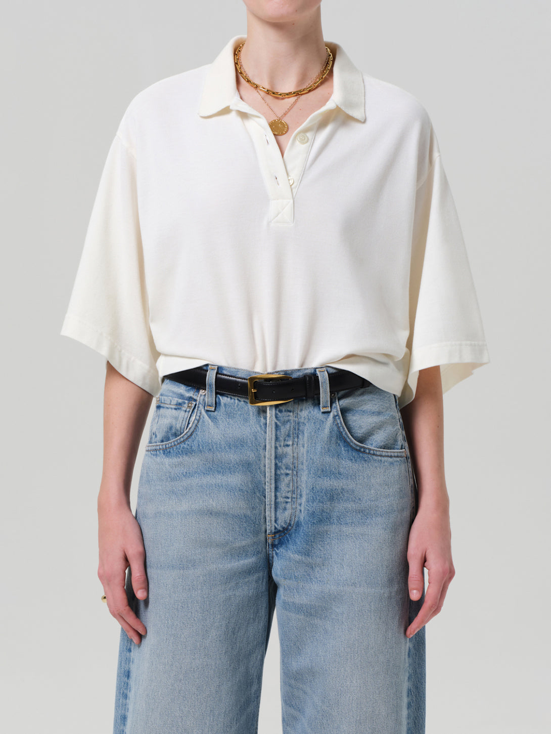 The Lowen Polo reimagines a classic menswear style with a feminine twist. This oversized polo features elongated, flowy sleeves and a cropped fit, offering a relaxed yet polished silhouette. Crafted from breathable pique fabric, it's the perfect balance of comfort and style. Pair with shorts for a laid-back, effortlessly chic look that's ideal for warmer days.