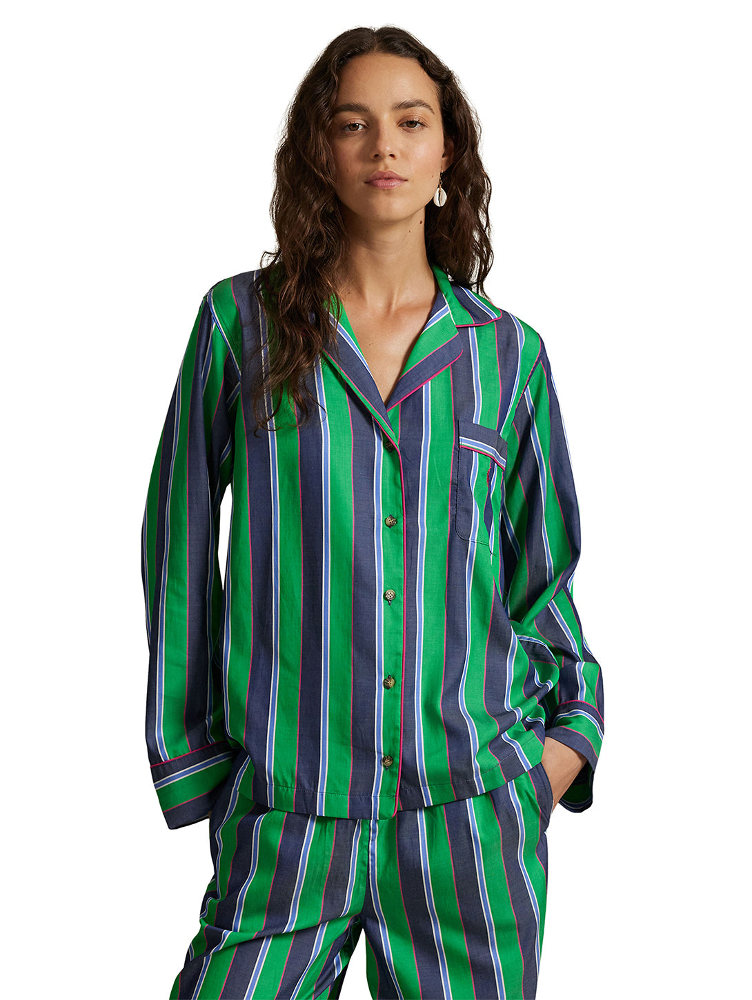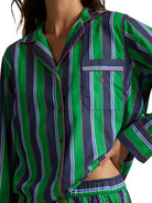 The Polo Ralph Lauren Madison PJ Set in Cricket Stripe—a timeless blend of classic elegance and contemporary comfort. Crafted from a luxurious cotton-lyocell blend, this set offers a soft, breathable feel perfect for year-round lounging.