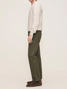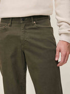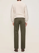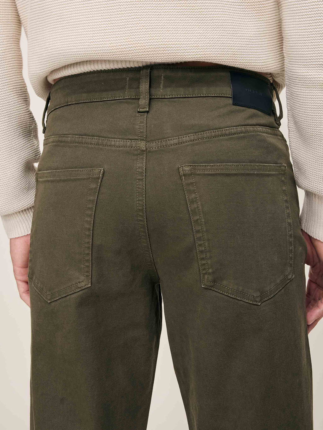 Noah is a straight fit cut with extra room through the seat and leg for a 90s inspired look. Military Green is a true army green twill. It features a silver shank, copper rivets, tonal stitching, a clean hem and a black back patch.