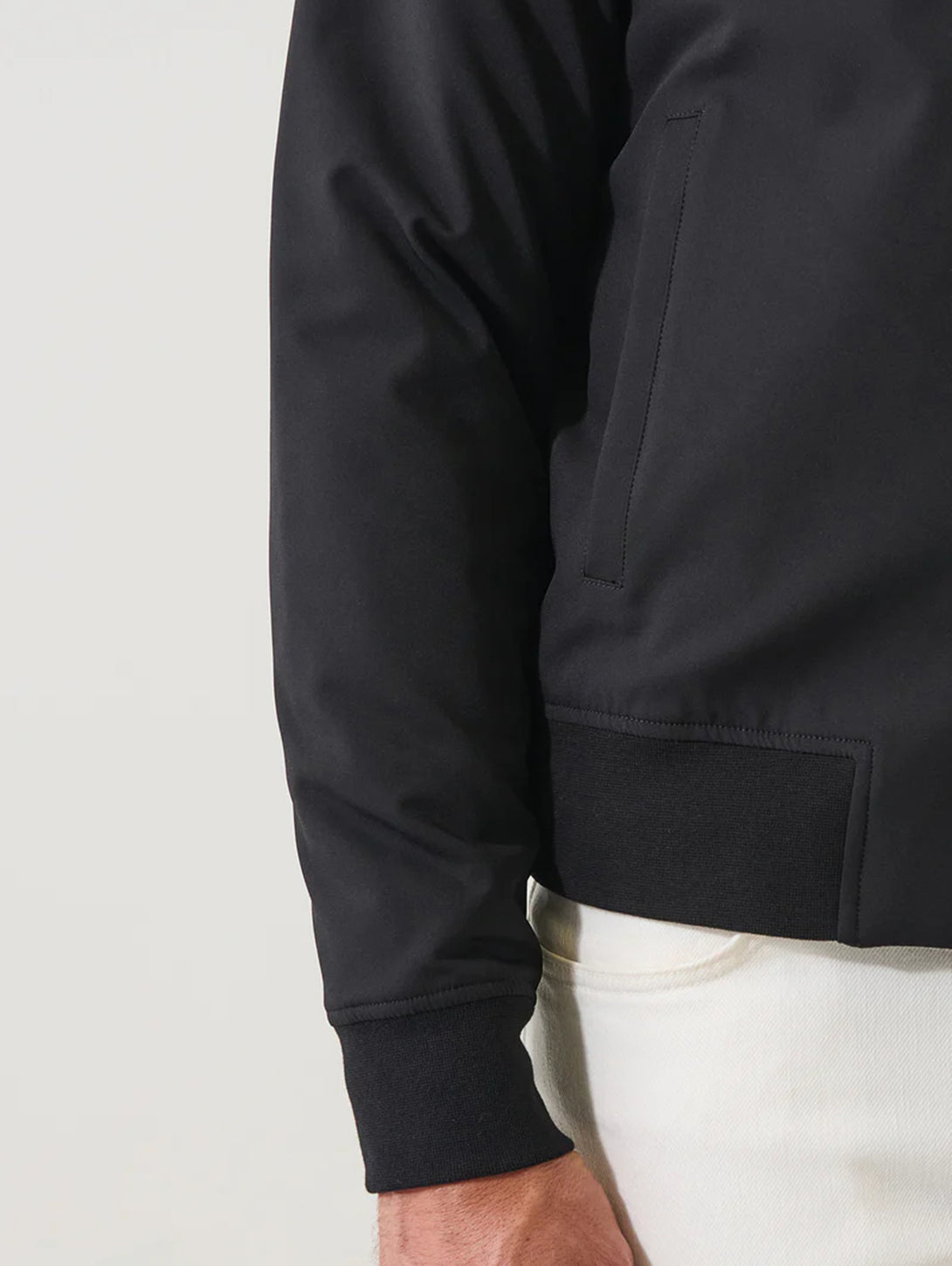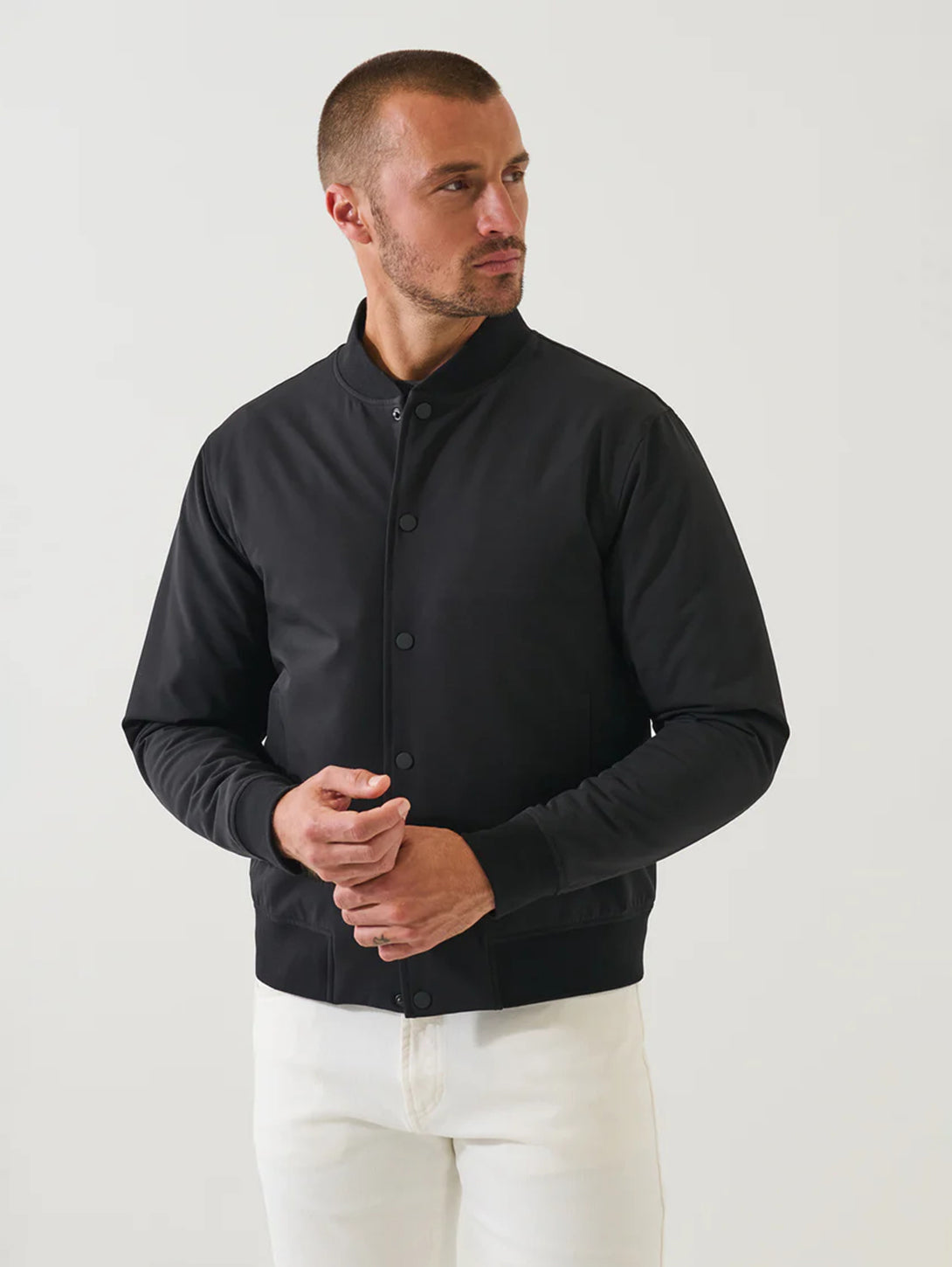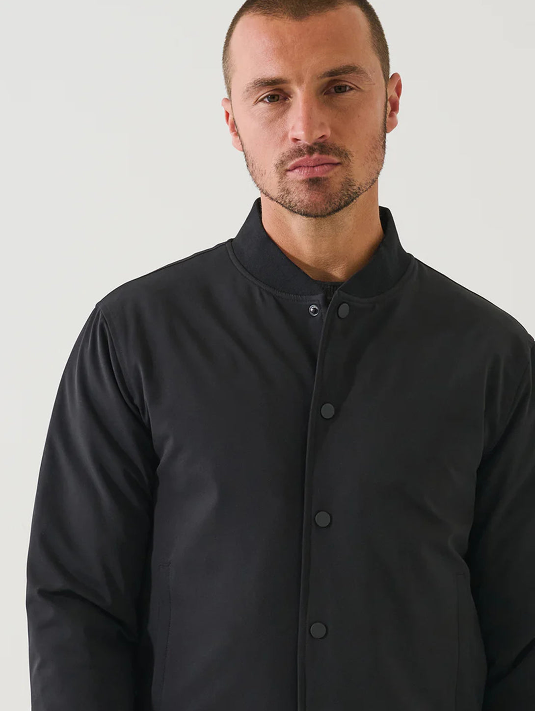 Crafted for the modern wardrobe, our Nylon Baseball Bomber offers the perfect fusion of function and sophistication. Lightly padded for just the right amount of warmth, this transitional essential is tailored in a sleek, contemporary silhouette and rendered in timeless black for maximum versatility. The sporty snap-front closure lends a refined athletic edge, while its polished design seamlessly transitions from casual moments to elevated occasions- an indispensable layer for the season ahead.