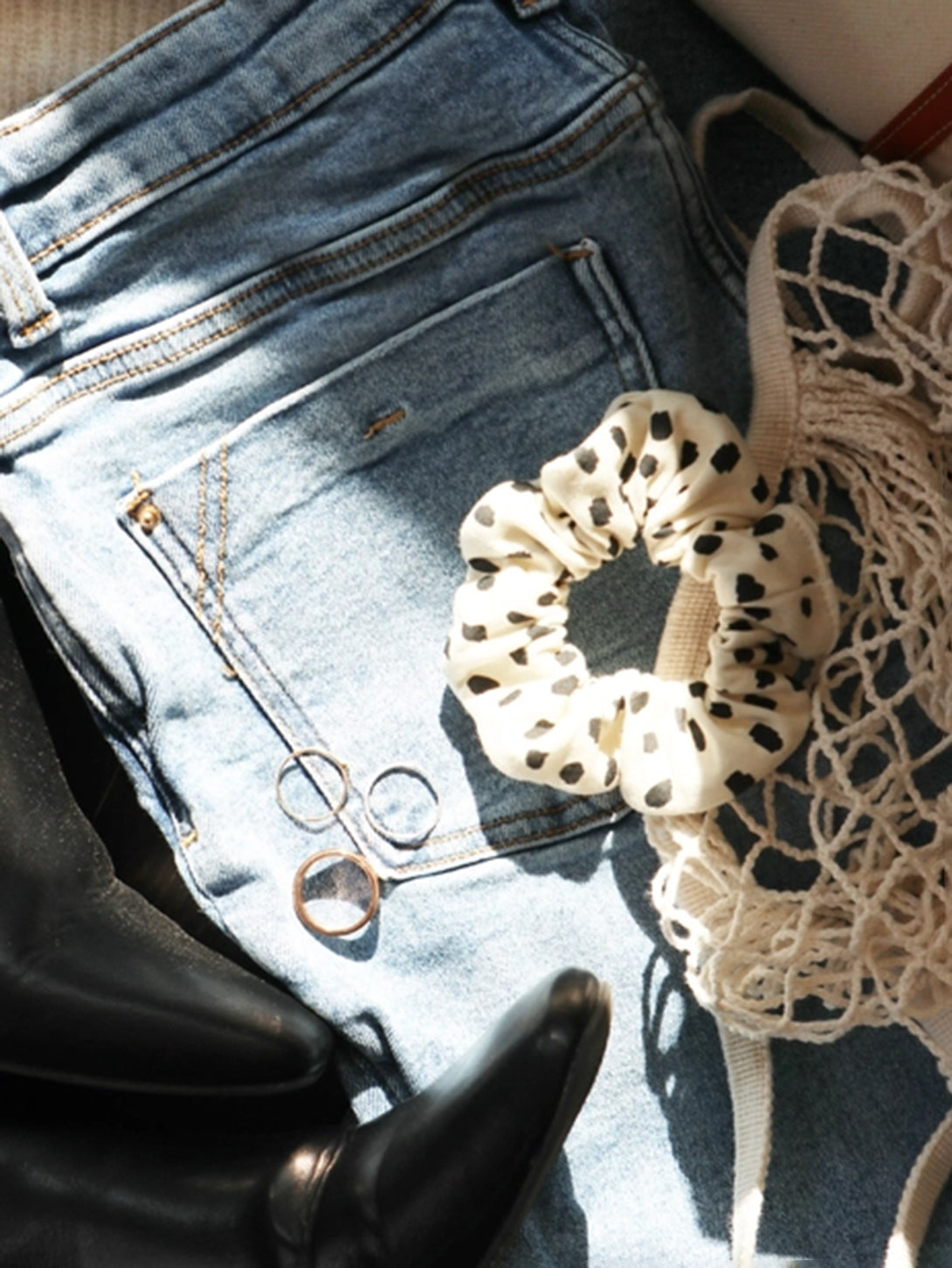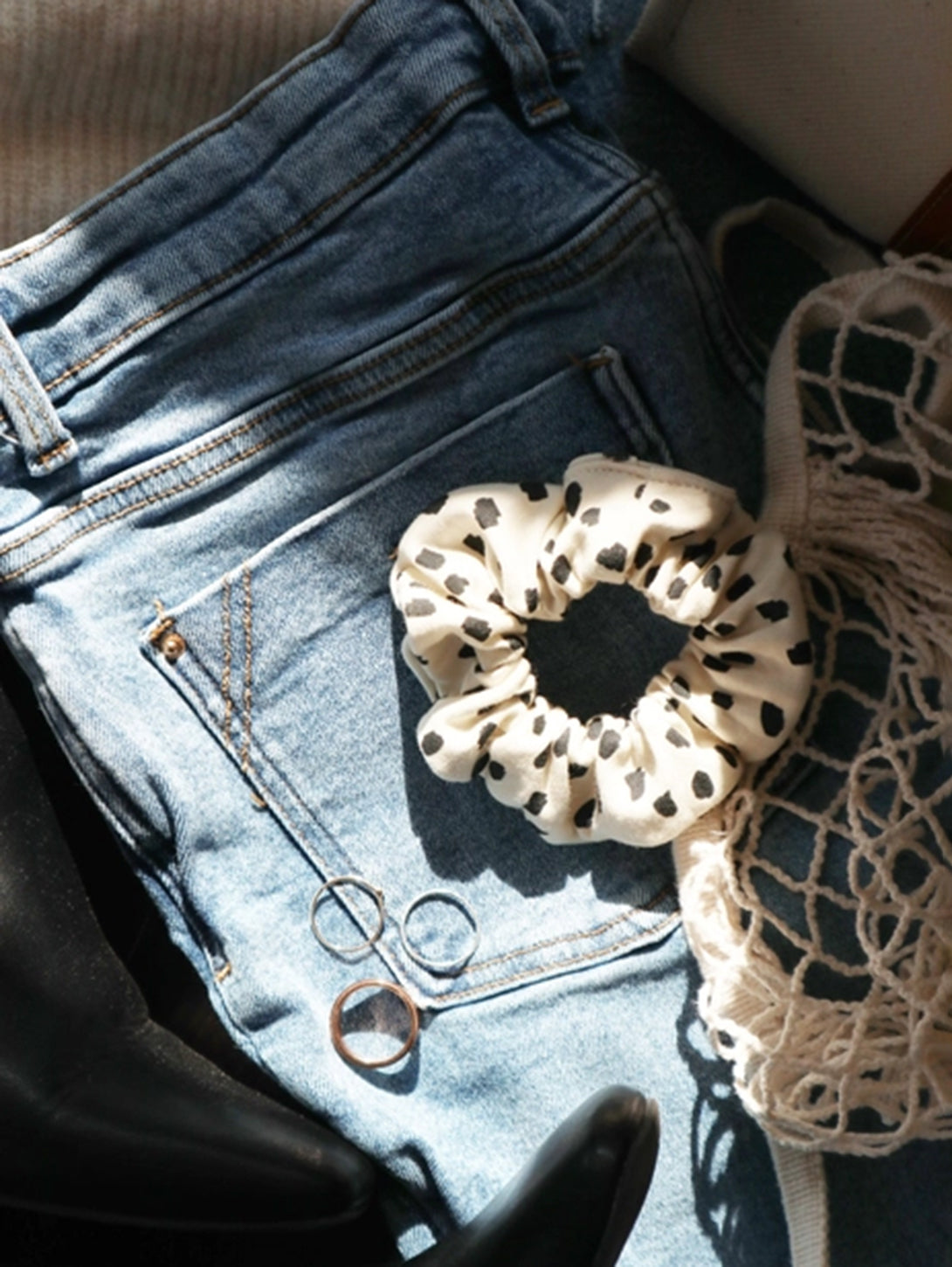 Organic Cotton Hair Scrunchie - Cream Dots