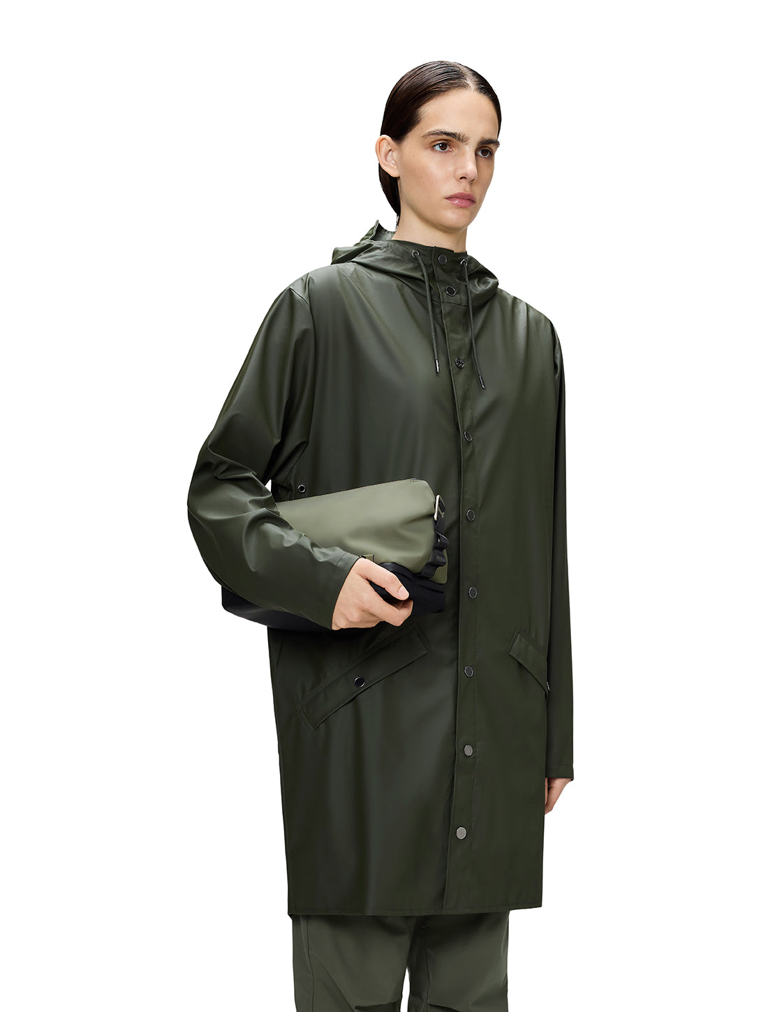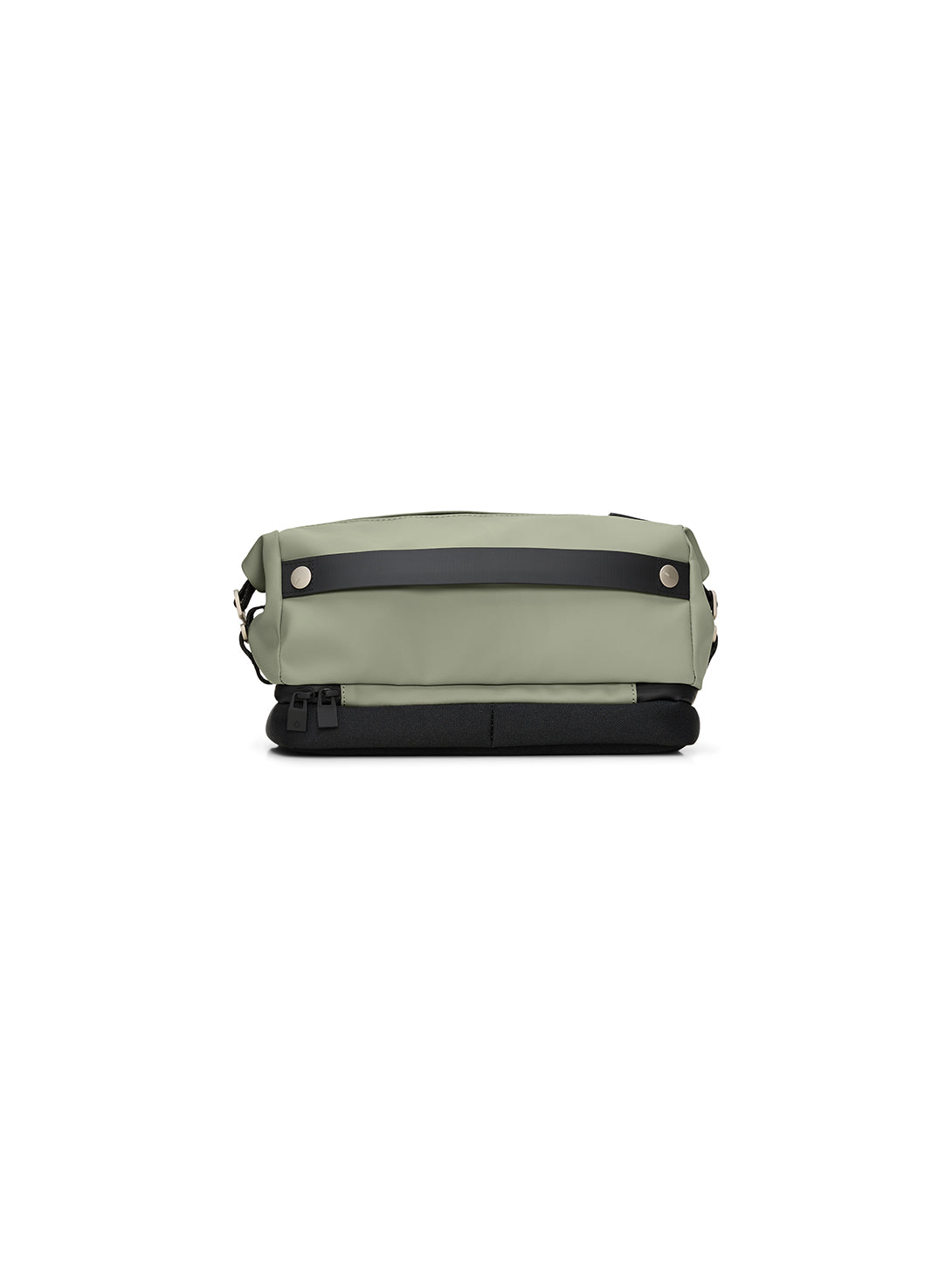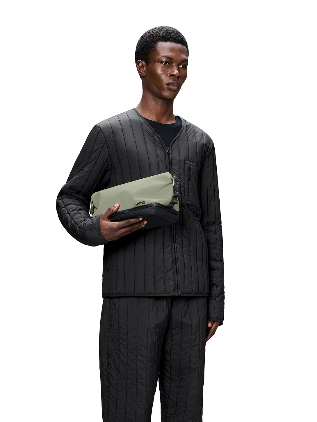Otaru Wash Bag is cut from a mix of Rains’ signature waterproof PU fabric and waterproof woven polyester, engineered for carrying strength, durability, and a smooth feel.