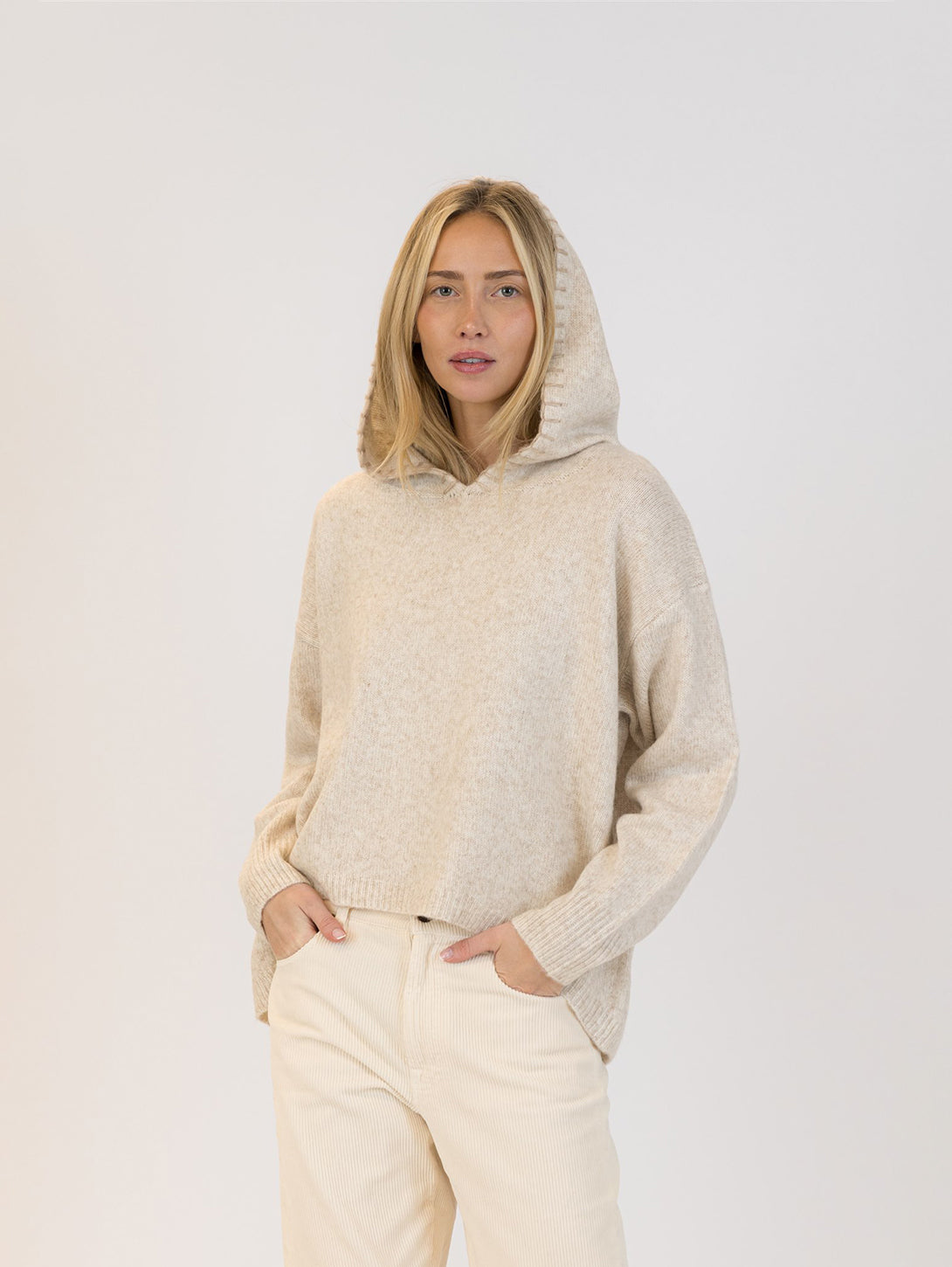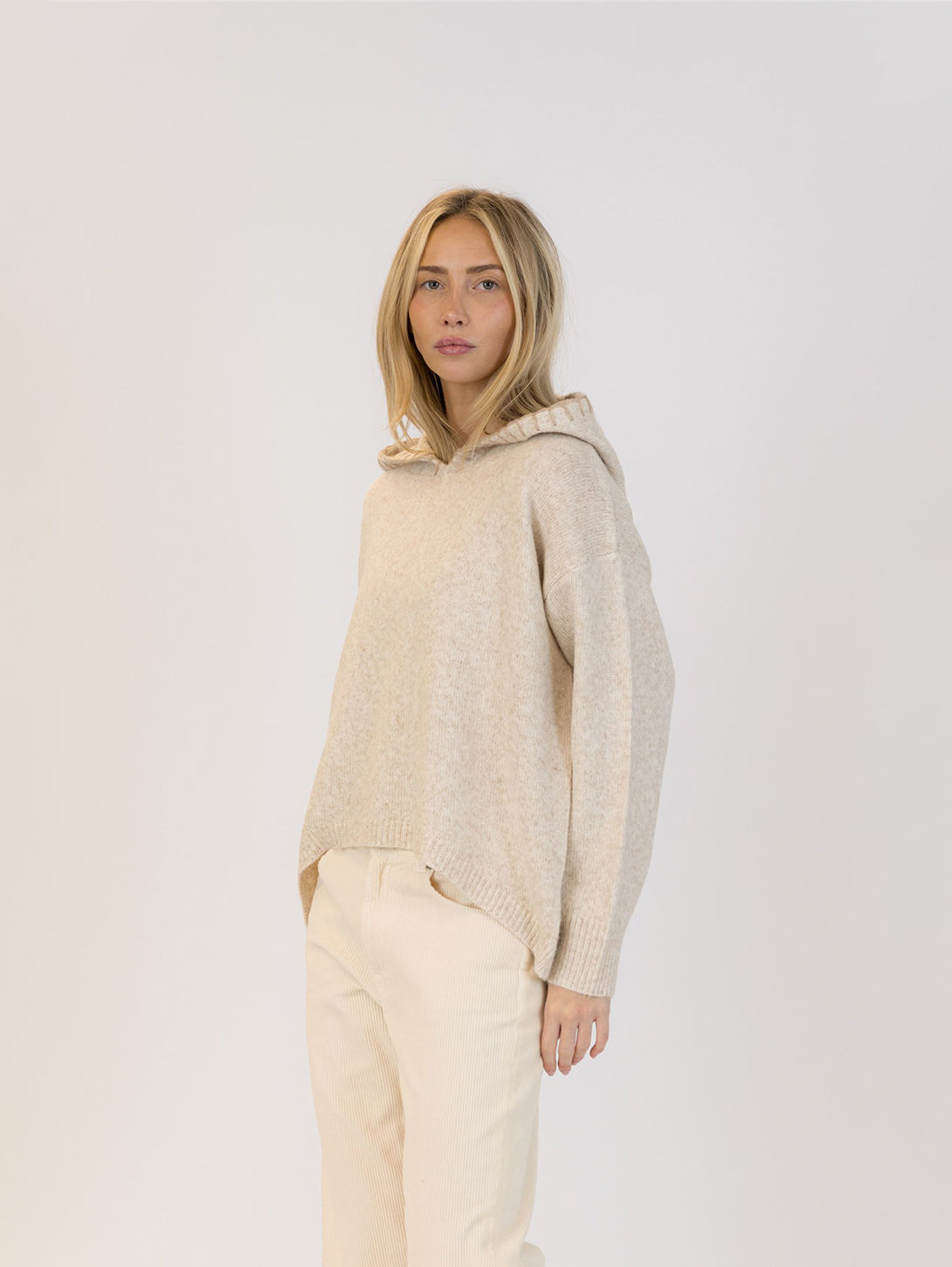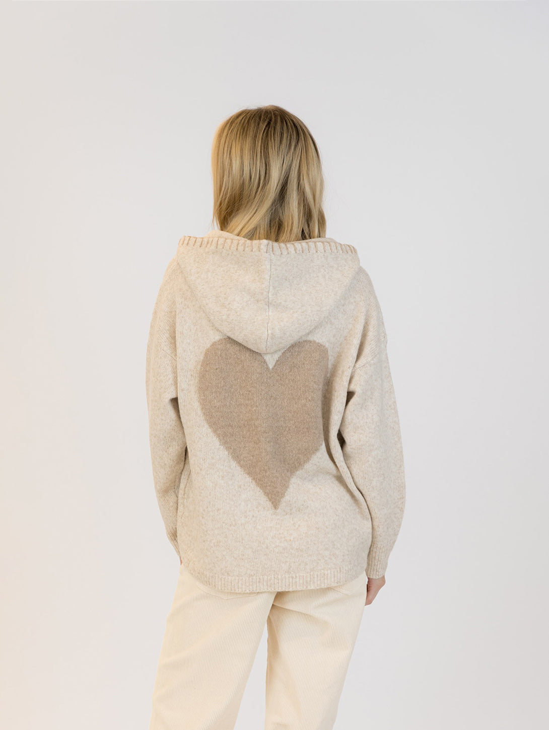 Stay cozy and cute with this relaxed beige hoodie, featuring a playful heart design on the back. The soft knit fabric and dropped hem make it perfect for layering, while the hood adds extra warmth and style. A charming choice for casual days.
