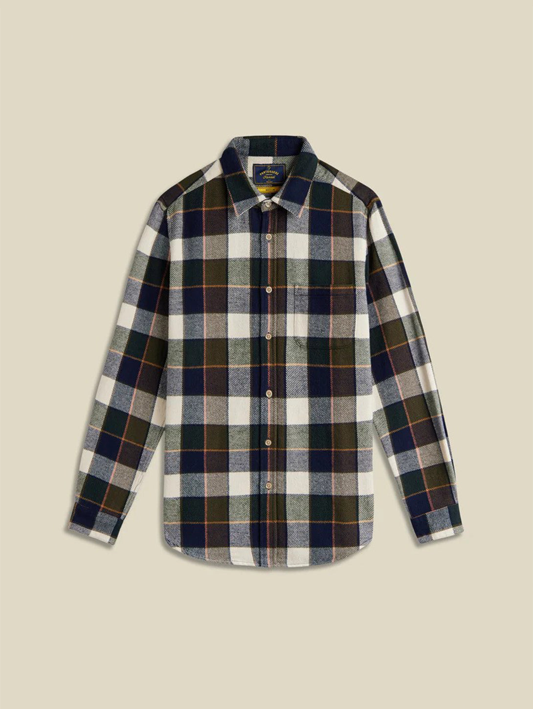 The Pine Plaid Shirt in Navy features a classic long-sleeve design with a structured collar for a polished look. Its front button closure allows for easy wear and versatile styling, making it ideal for layering or wearing on its own in various settings. Crafted for both comfort and durability, this shirt combines timeless plaid patterning with expert tailoring to elevate your wardrobe essentials.