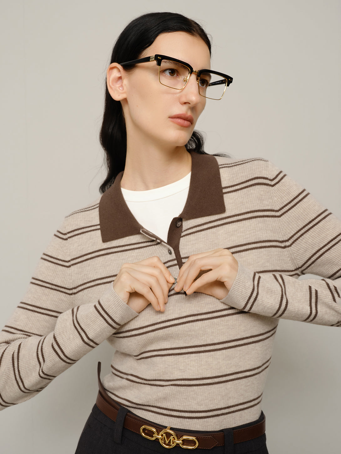 This khaki-toned polo shirt offers a soft, midweight knit and subtle structure. A refined take on a casual classic, perfect for smart layering or off-duty looks.