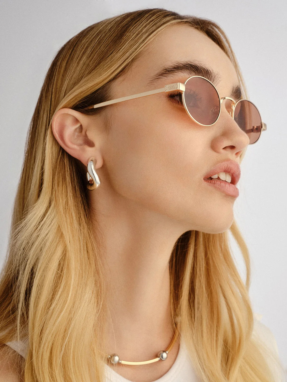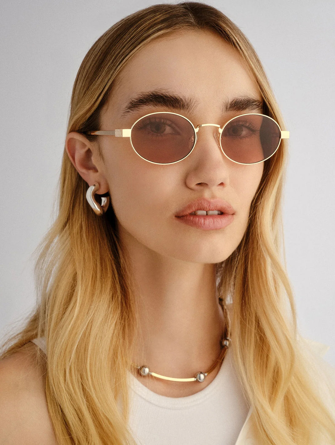 Defined by its refined oval profile, our POSEIDON DEUX blue light glasses are an ode to early ‘90s minimalism. Designed with three-dimensionally crafted metal flag stripe hardware on the temples, this flattering unisex style features adjustable nose pads for a bespoke fit.