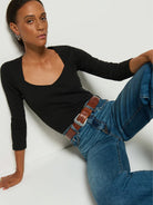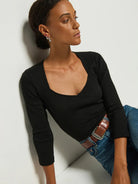 Simple elegance meets everyday comfort with this anything-but-basic staple, featuring a square neckline and cropped sleeves. Dress it up with your favorite skirt, or keep it laid back tucked into high-waisted jeans. This one comes in Jet Black.
