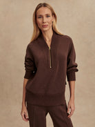 Sally 1/2 Zip Sweat Top - Coffe Bean Marl