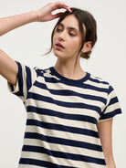 Short Sleeve Anais Crew Stripe Tee - Navy Stripe