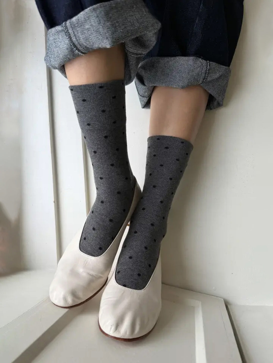 Sneaker Socks - Charcoal Polka Dot