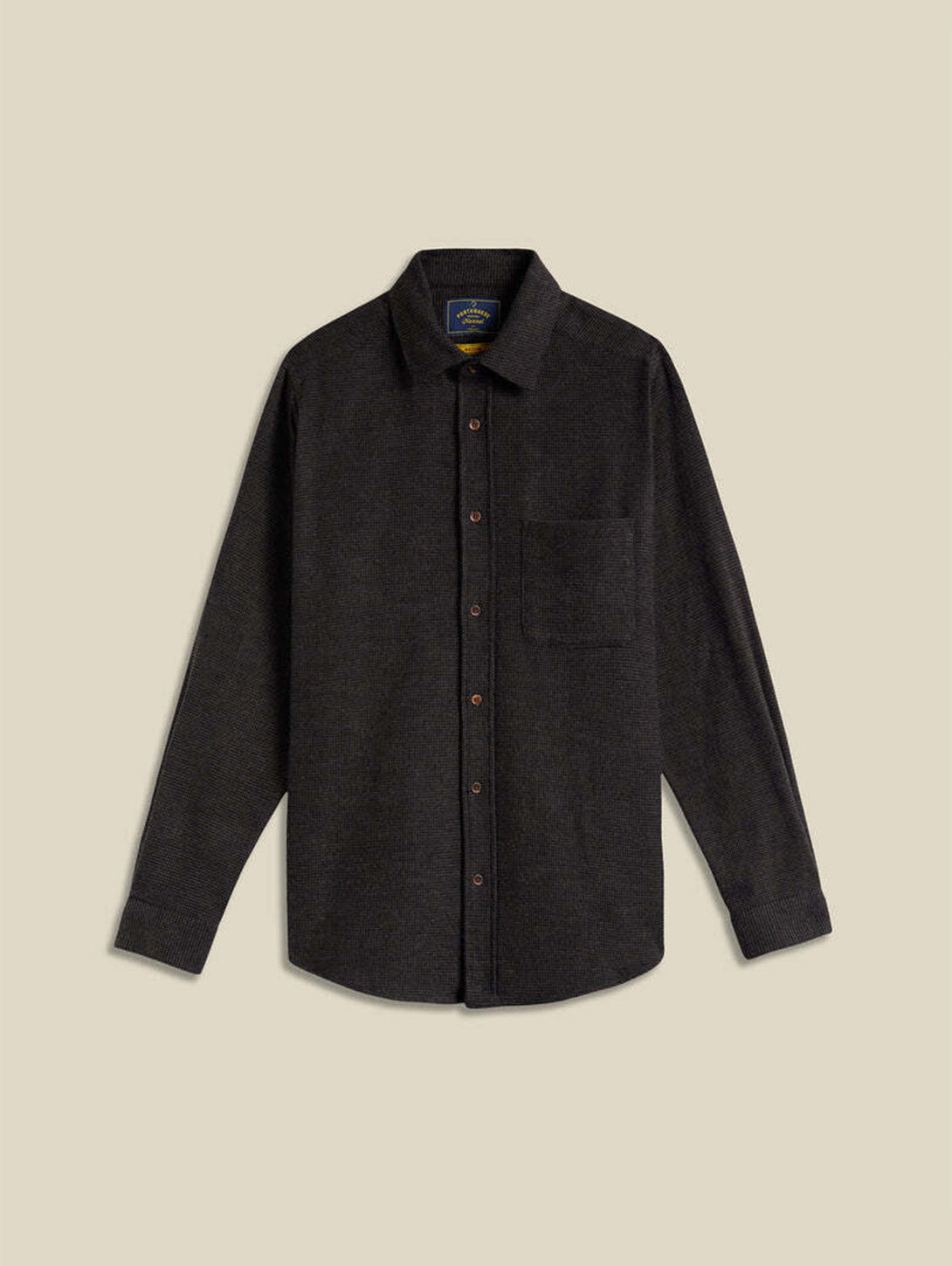 This brown Sounds Shirt features a classic long-sleeve design with a structured collar and a front button closure, offering a refined yet versatile look. Its tailored fit and quality construction make it suitable for professional settings or smart-casual occasions, ensuring both comfort and style throughout the day.