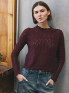 Elevate your crew sweater with all-over stitchery patchwork in one of the colours of the season; Scalloped neckline, waistline, wrist of sleeve; slightly boxy