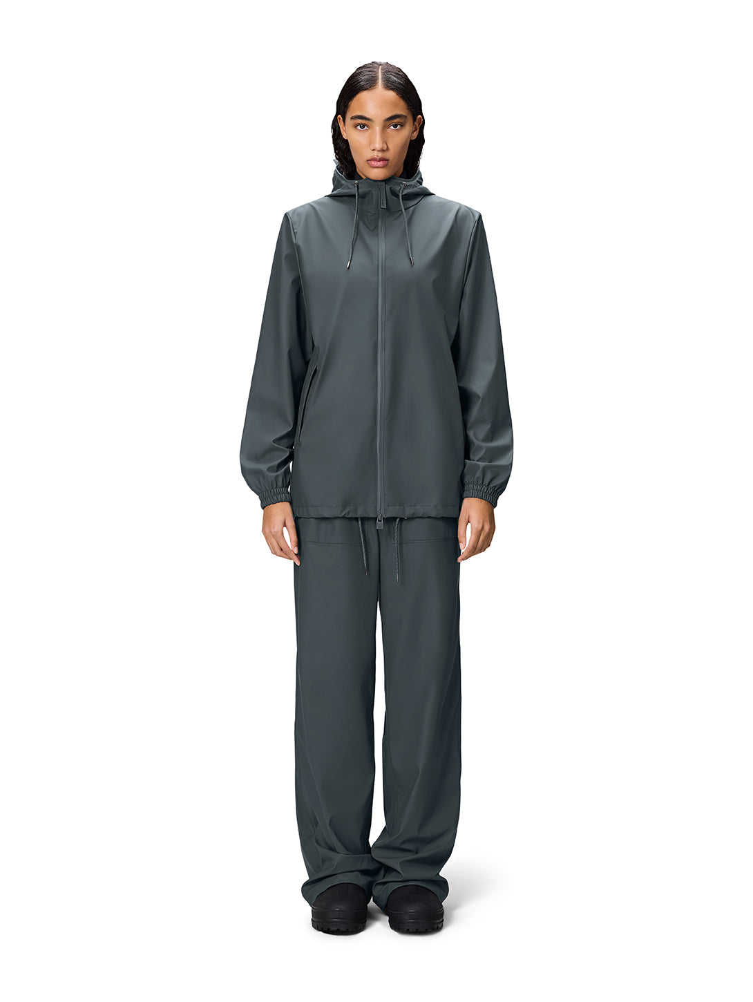 Storm Breaker is a unisex raincoat with an elevated sporty aesthetic and weather-resistant hardware.