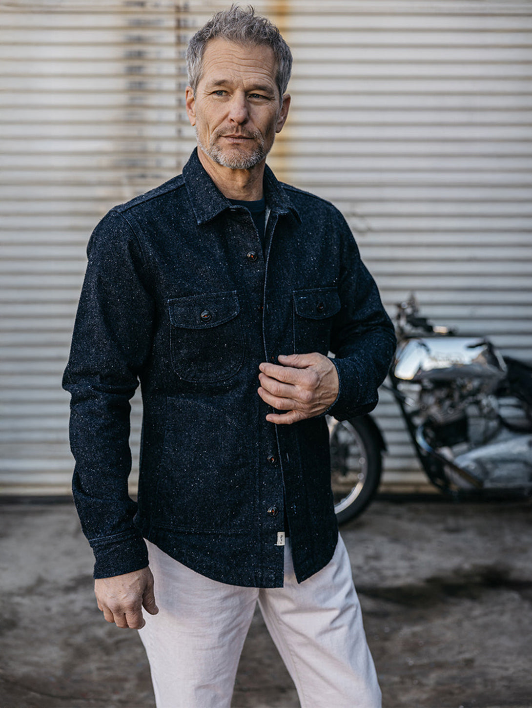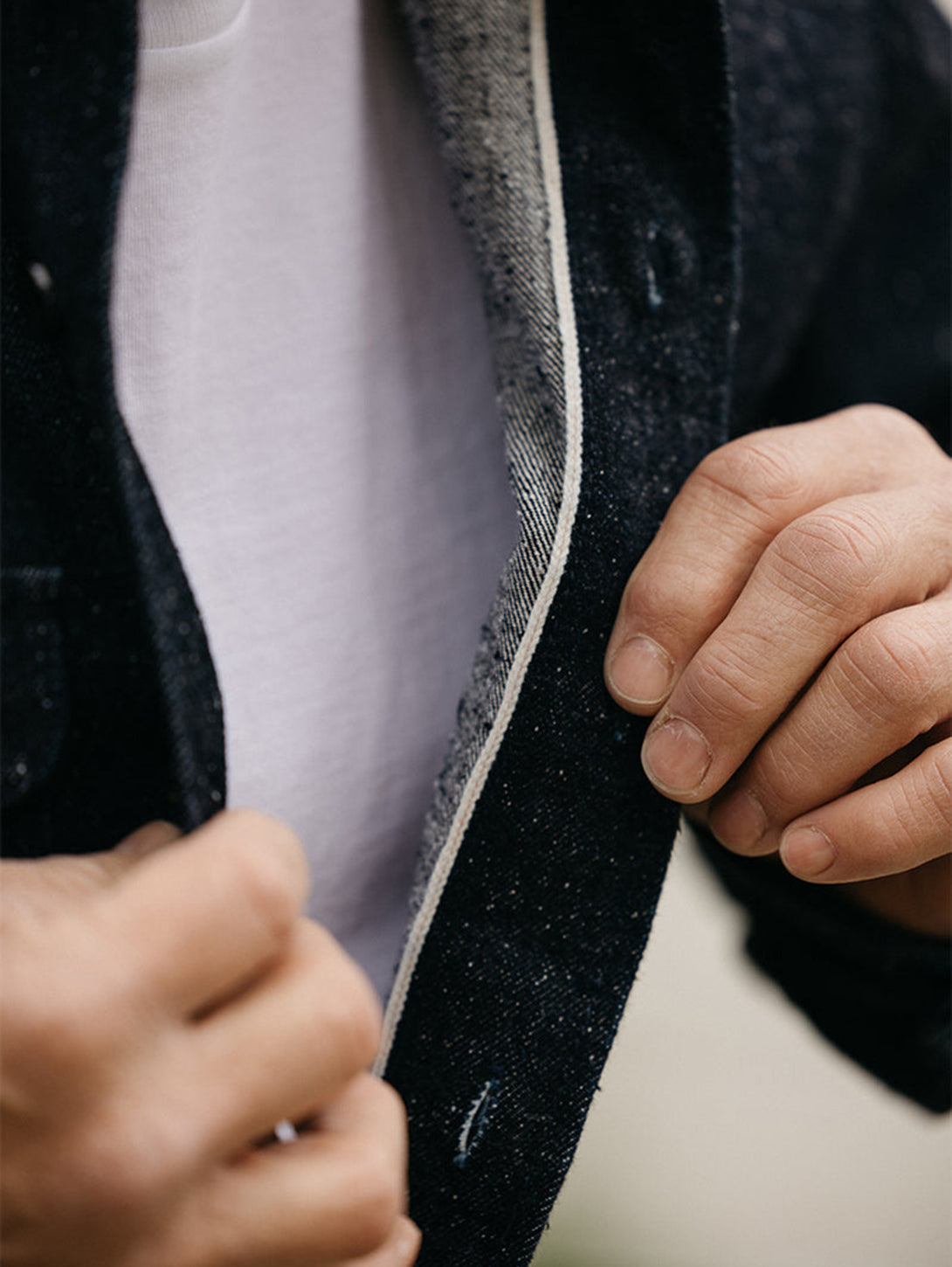 We had a vision of a new denim that after an extended search we found only one mill in Japan that could make it. Usually nep denim uses polyester in the fabric to make the neppy appearance but we wanted it to be an all natural 100% cotton denim.