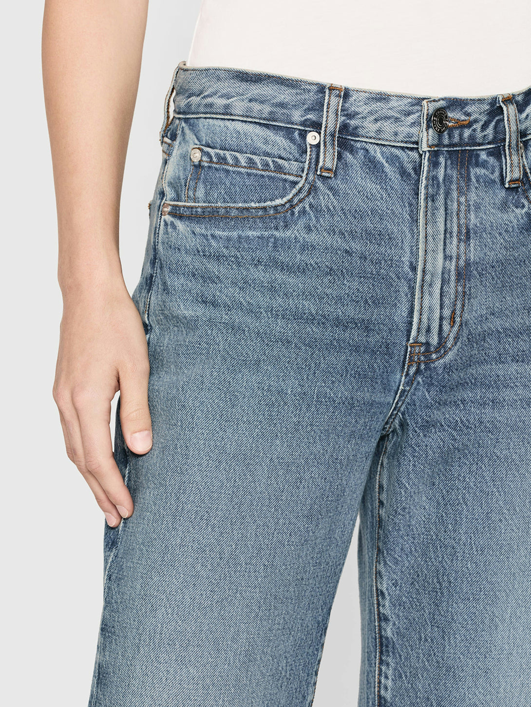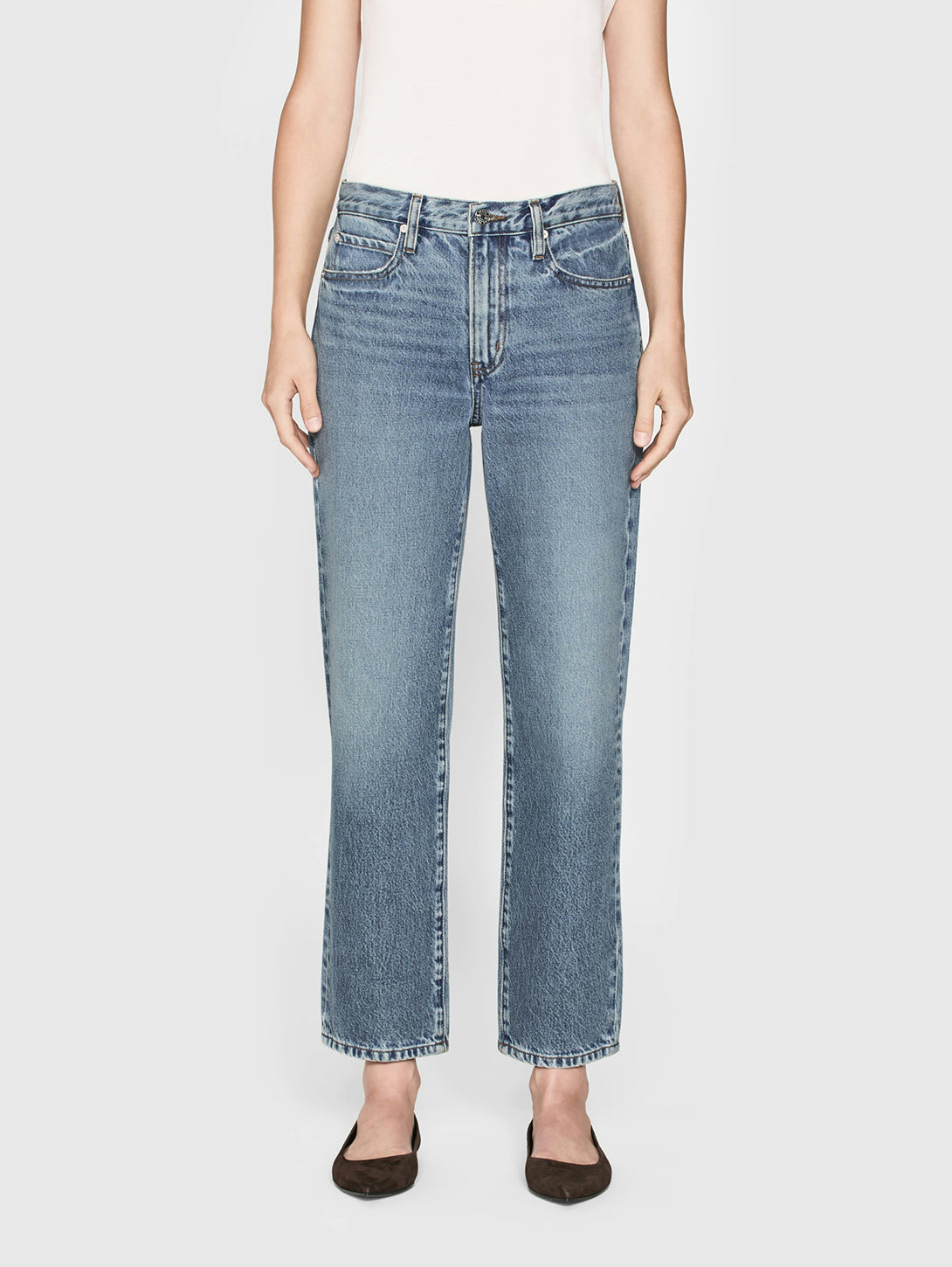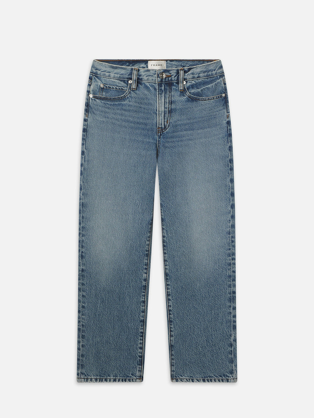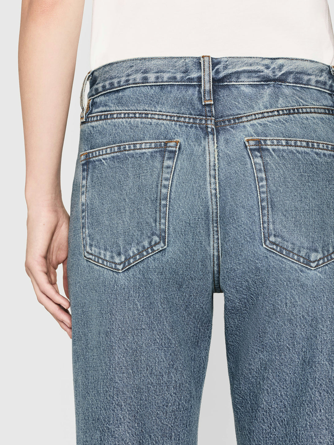 A cleaned-up rendition of a relaxed jean, this straight-leg pair "hangs" from a mid-rise waist with just enough room through the hip and thigh for a fluid fit and feel. Never slouchy, always effortless, The Hang has an easy, tailored look that strikes the perfect balance.