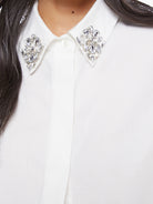 A twist on the classic button-up with long sleeves, a hidden button panel and a cropped fit. The Honor is made from 100% cotton in black with an embellished collar.