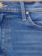Strike three. This mid-rise straight leg has a 29-inch inseam and a clean hem. Cut from super stretchy denim, Swing And A Miss is a mid-blue with whiskering and fading at the knee.