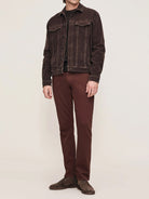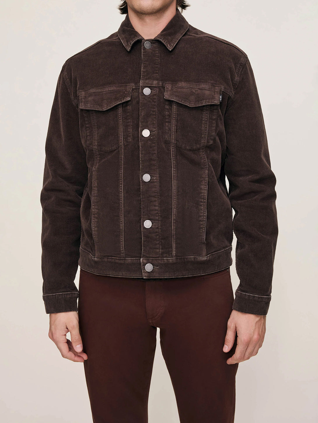 Vaughn is a vintage-inspired classic trucker jacket that’s neat at the shoulders and straight through the body. Meteorite is an ultra deep brown, corduroy. It features silver hardware, tonal stitching, a clean hem and a black back patch.