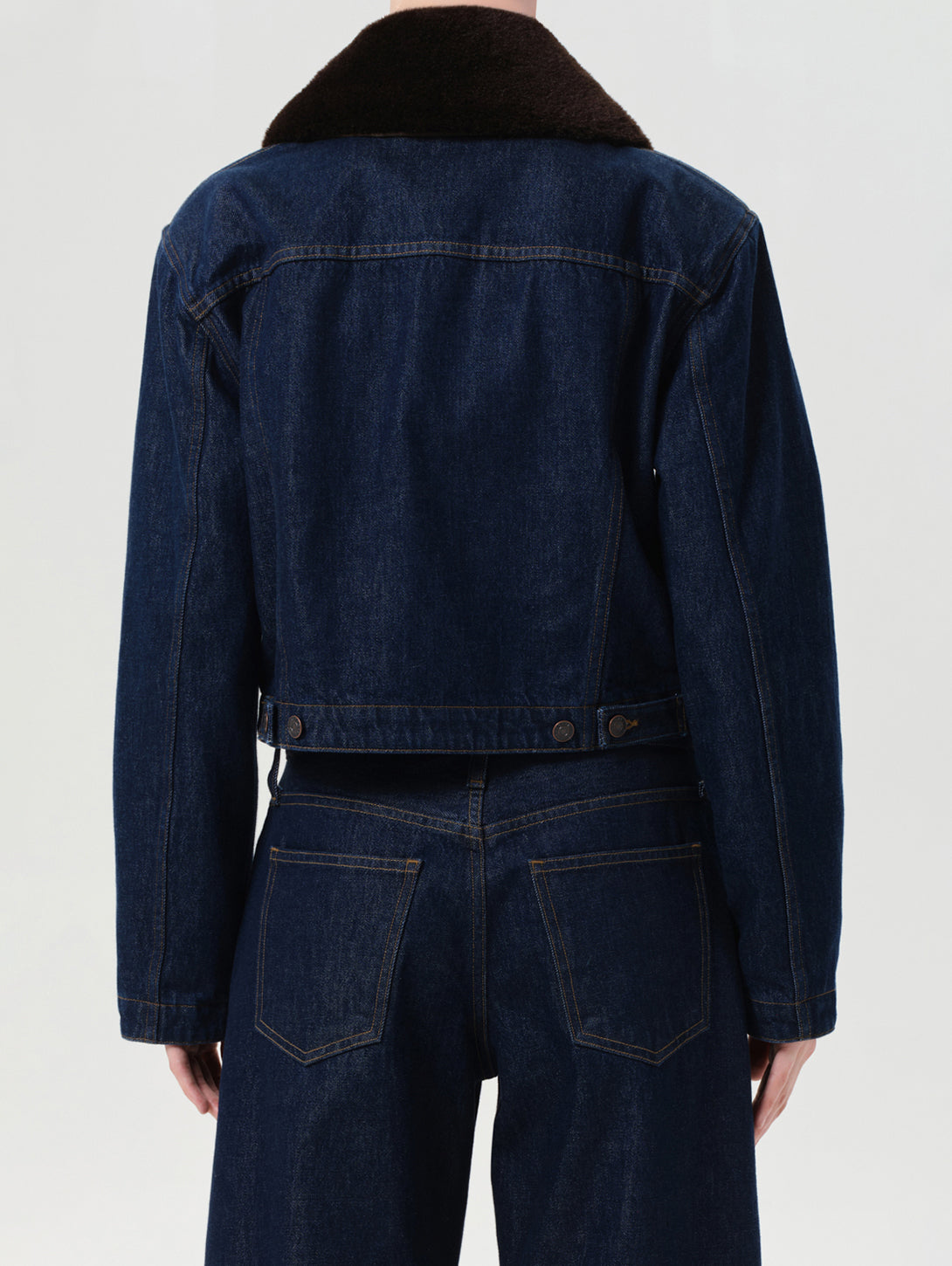 A refined update to a timeless staple, the Walker Jacket features a cropped silhouette in a clean dark rinse with a removable faux fur collar for seasonal versatility. Style it with tonal denim for a polished, everyday uniform.
