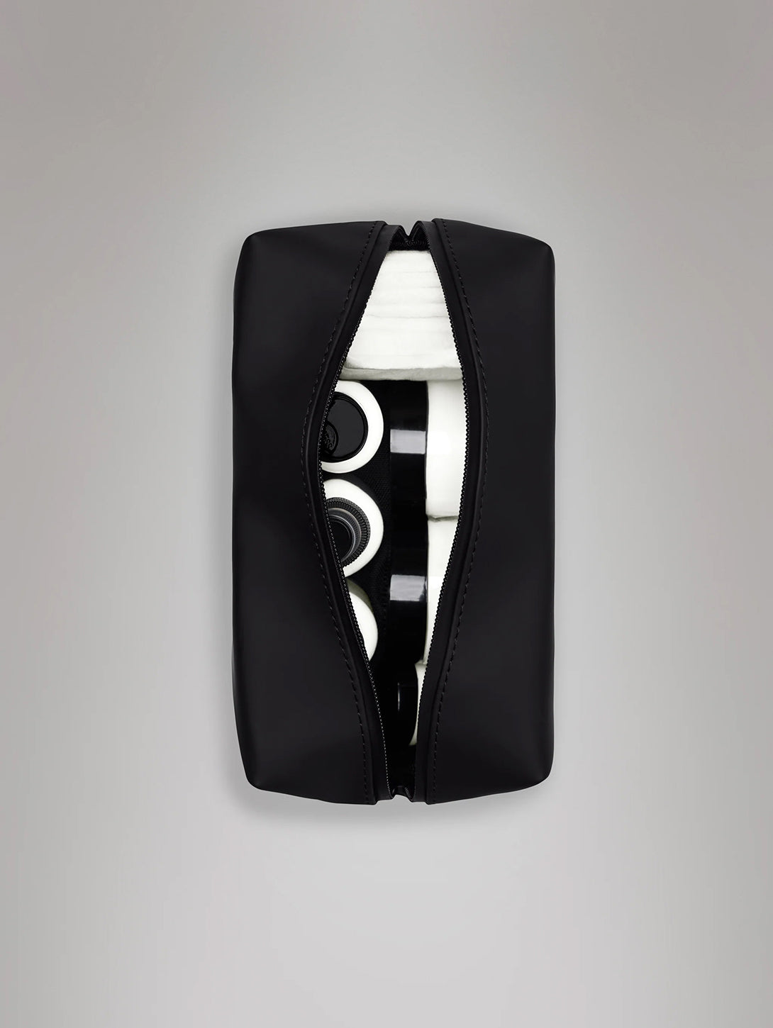 Wash Bag Small is a minimal design featuring a single compartment large enough to fit essential toiletries. The waterproof design is finished with a coated zip and webbing carry handle.