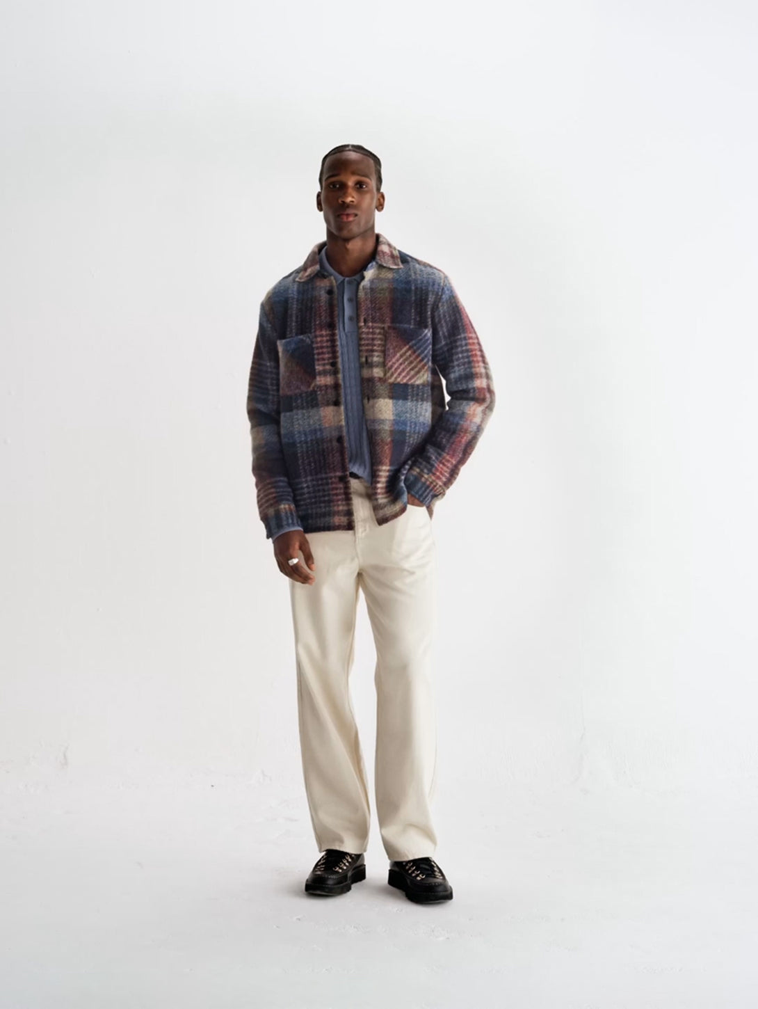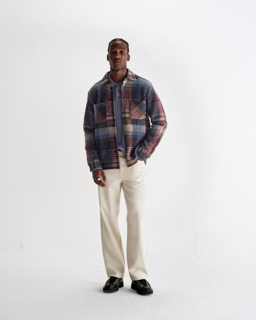 The Wax signature piece. The Whiting, our year-round staple, returns in a new large scale blue knitted brushed wool blend check design with hues of burgundy, brown, and grey. It features environmentally-friendly Corozo nut buttons and front patch pockets. Is it a shirt? Is it a mid-layer? Is it a jacket? It's all of those things and much, much more.