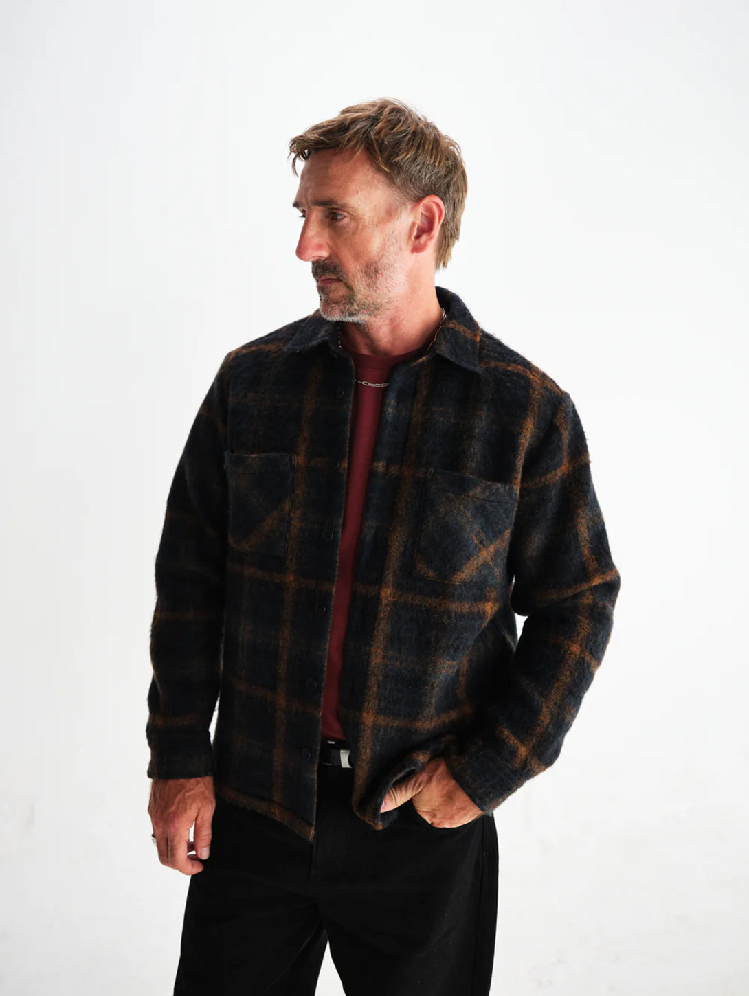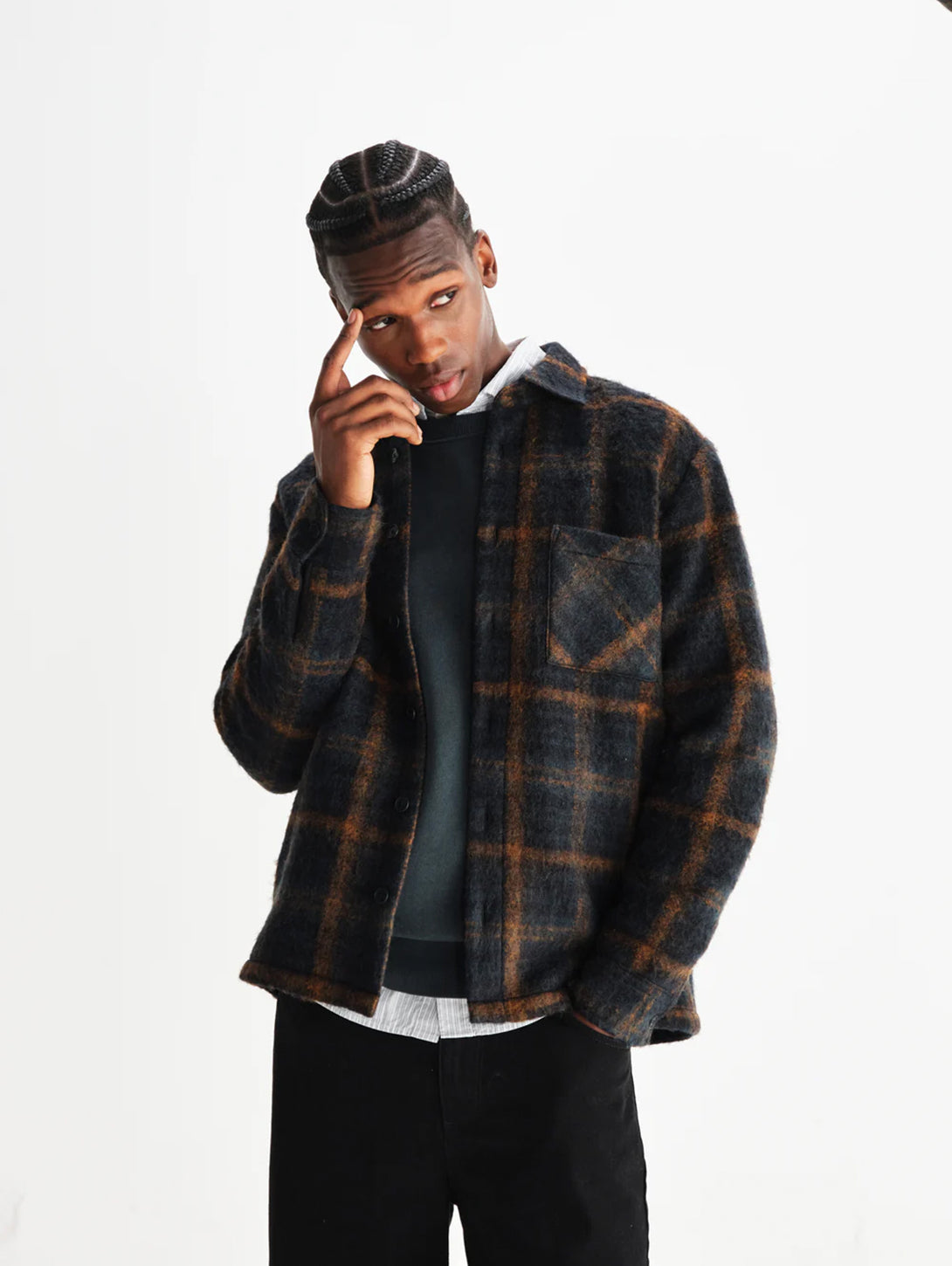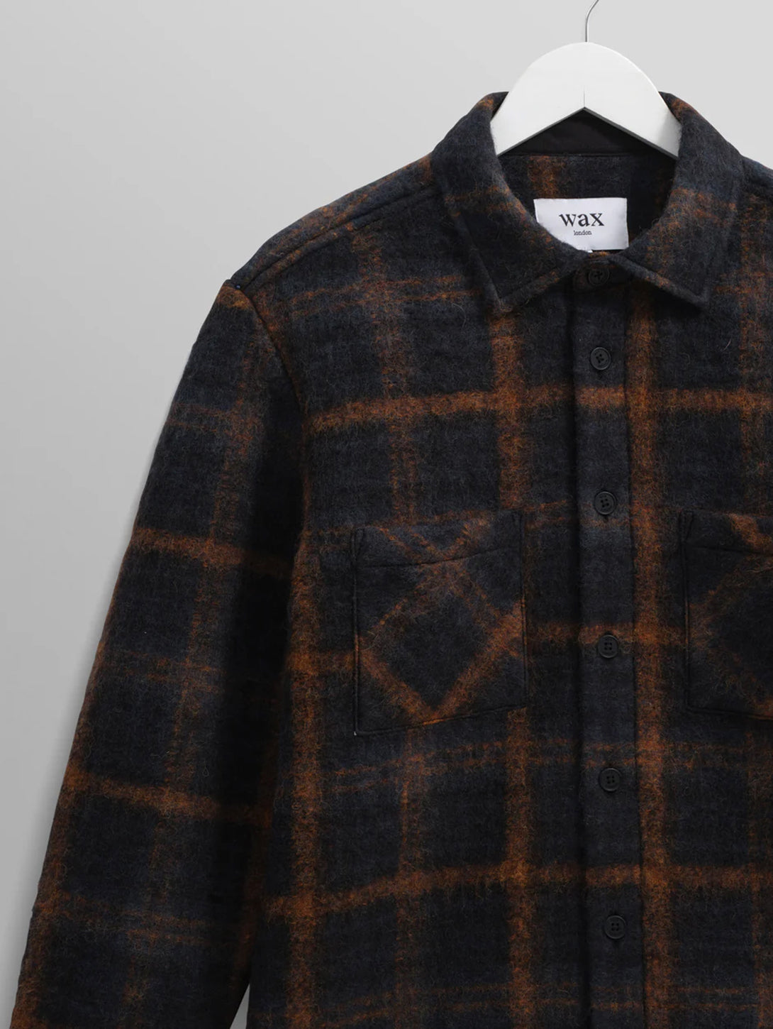 The Wax signature piece. The Whiting, our year-round staple, returns in a new large scale blue knitted brushed wool blend check design with hues of burgundy, brown, and grey. It features environmentally-friendly Corozo nut buttons and front patch pockets. Is it a shirt? Is it a mid-layer? Is it a jacket? It's all of those things and much, much more.