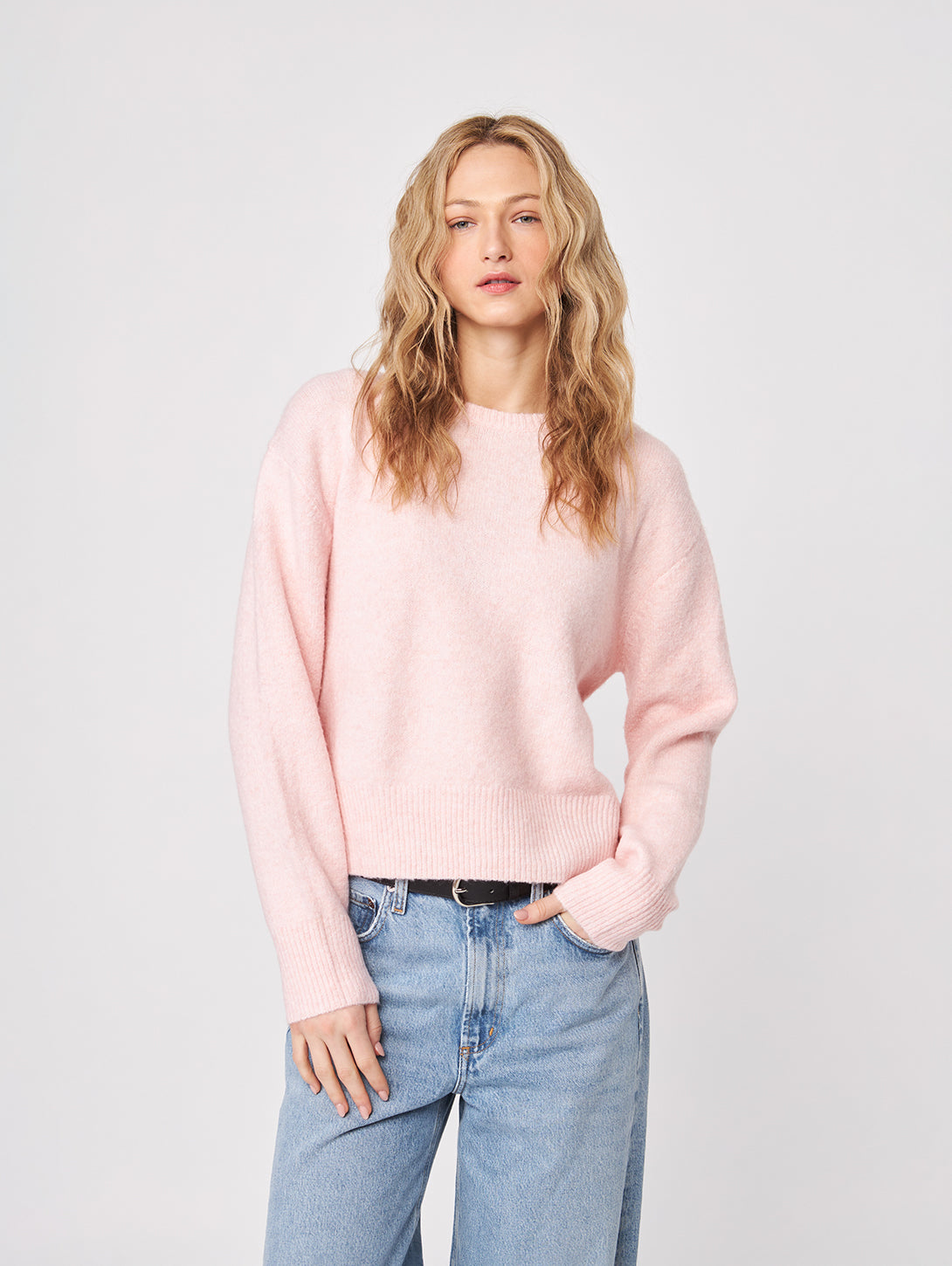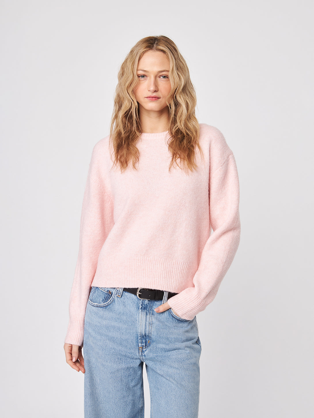 Cozy meets classic in this blush pink crewneck sweater. Crafted from a soft, plush knit, it features a relaxed fit with dropped shoulders and full-length sleeves for ultimate comfort. The light pastel tone adds a fresh, feminine touch—perfect for layering over jeans or tucking into tailored pieces. A go-to staple for easy, everyday style.